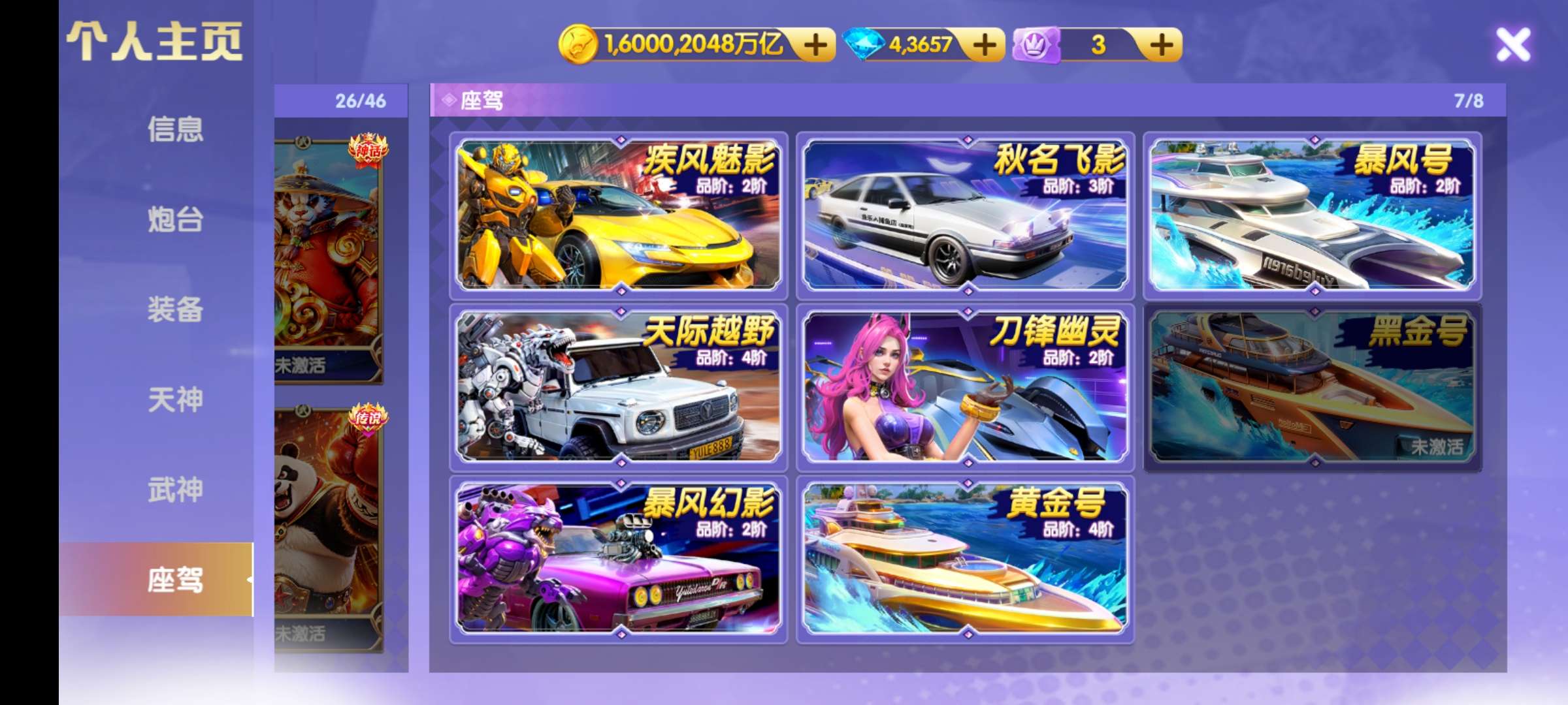 官Q V10 16000京 6万基础炮 天神全觉醒 三姐妹羁绊 2100连斩 超神装3级 资源多多