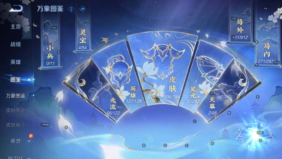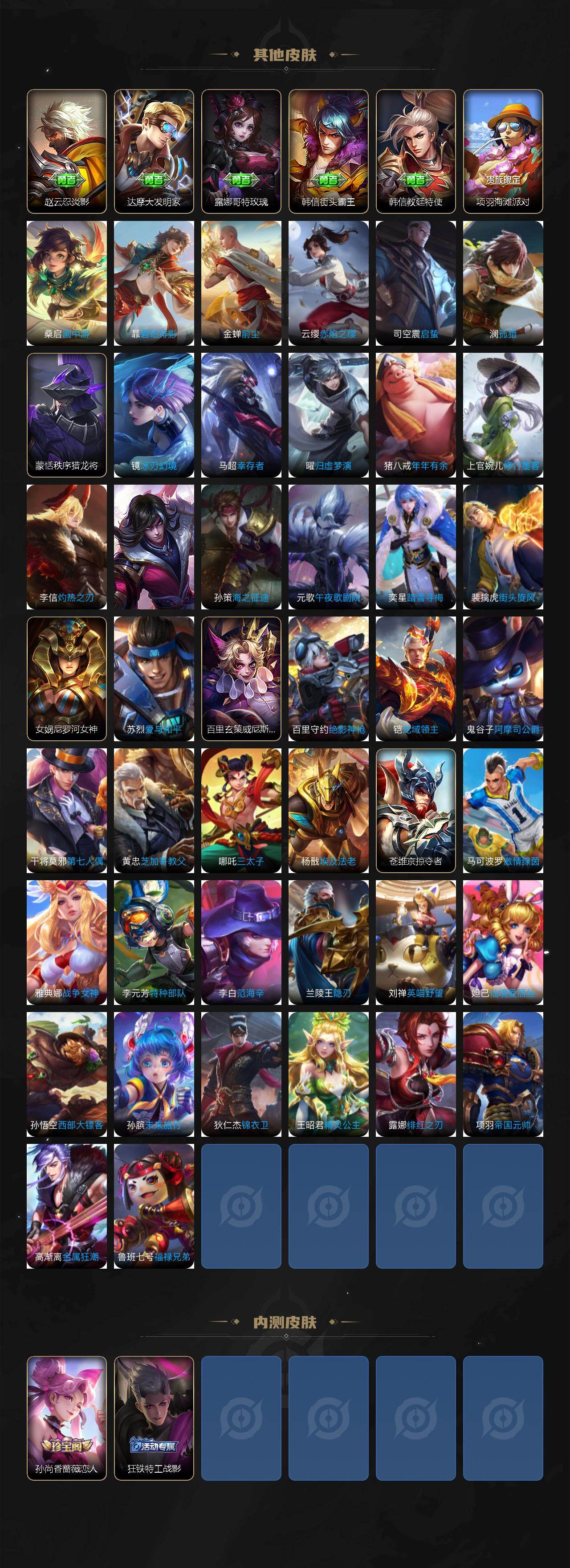 贵族8/皮肤306/典藏1/传说20/史诗94/英雄127/孙权全皮/苍全皮/