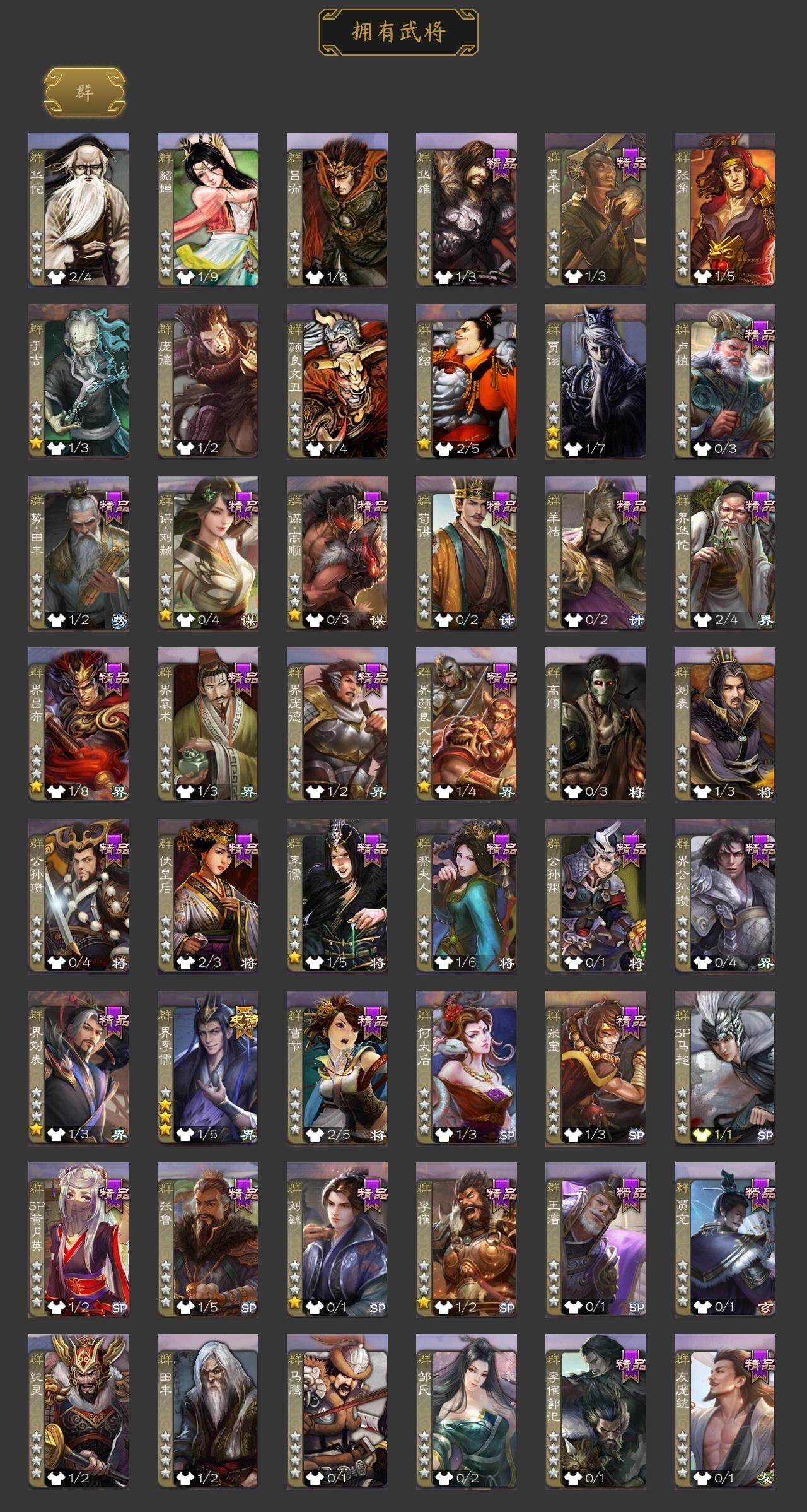 界钟会,郝昭,曹婴,曹纯,程昱,花鬘,骆统,界李儒,神吕蒙,神周瑜,SP关羽,乐进,曹昂,诸葛诞,朱灵,文聘,SP姜维,钟会,曹冲,郭淮,满宠,界王异,界曹操,界司马懿,界夏侯惇,界张辽,界