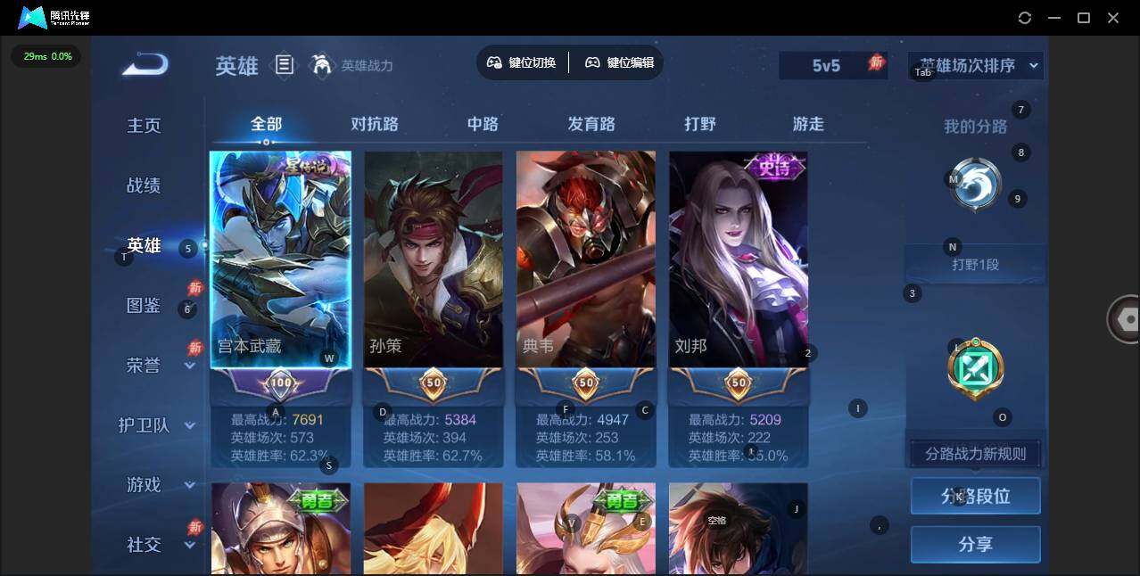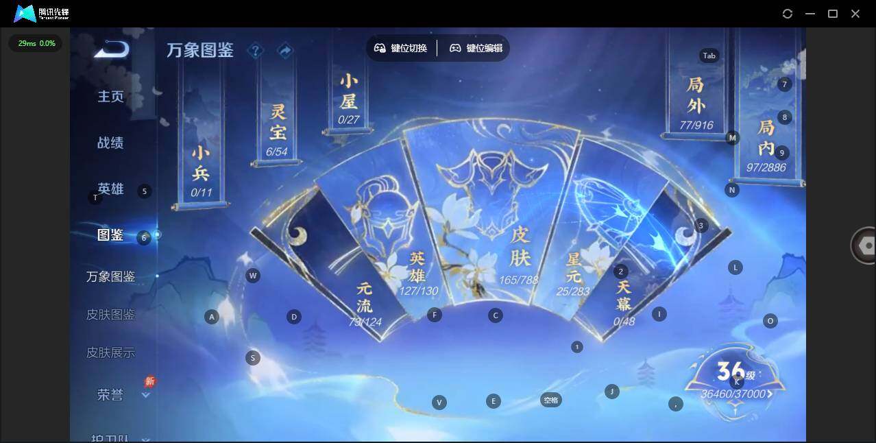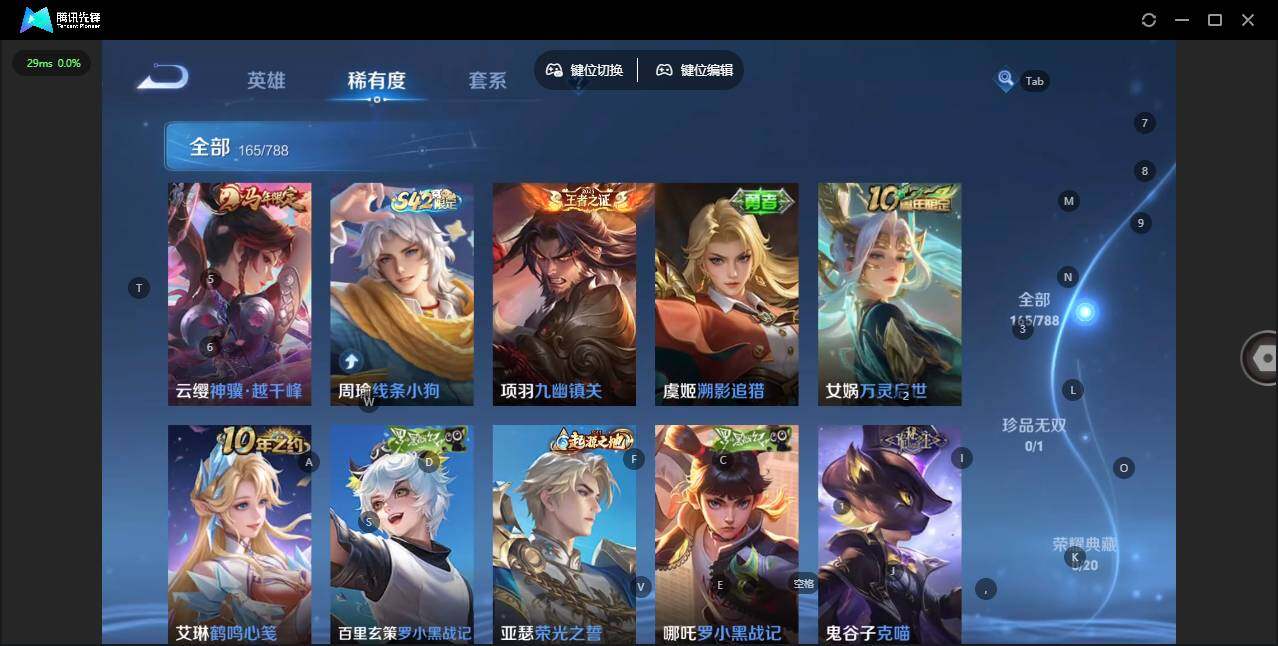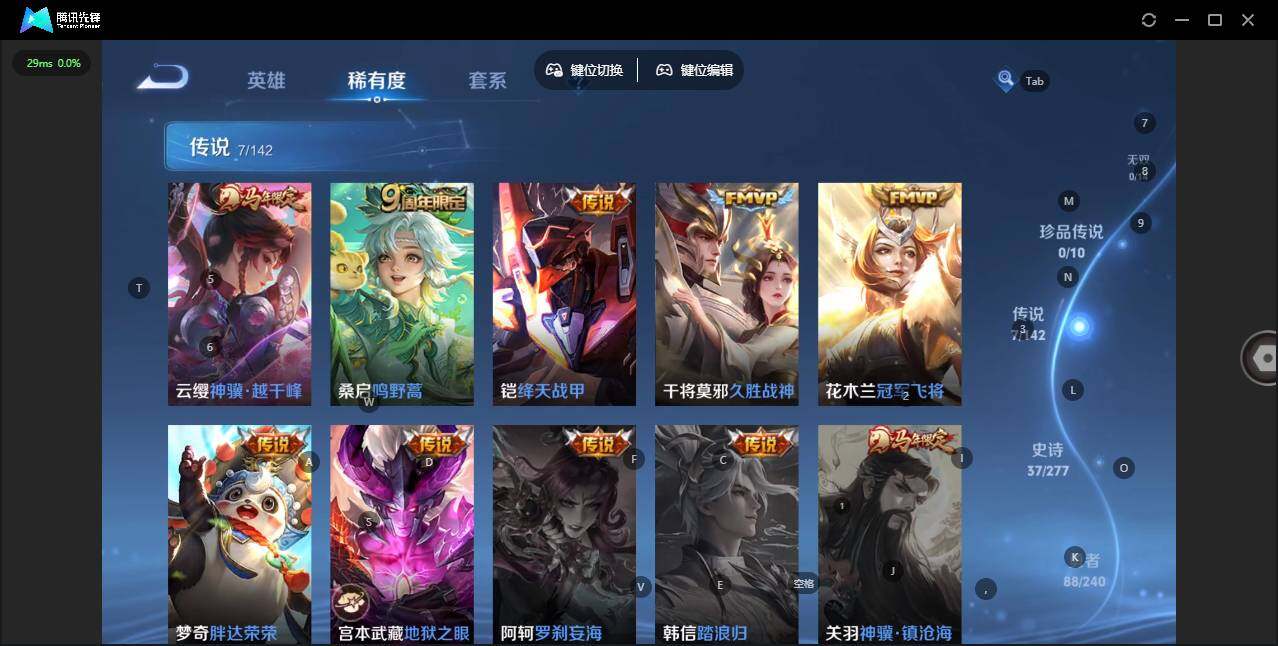 实名: 可修改 贵族等级: V4 英雄数: 127 皮肤数: 165 星传说: