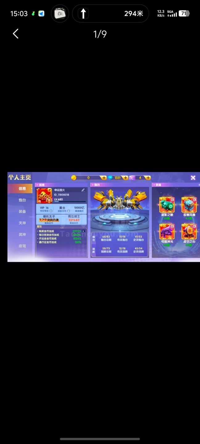 官方 V16 3975 加成 天神七觉醒 32 武神 全座驾