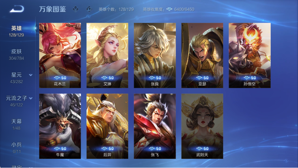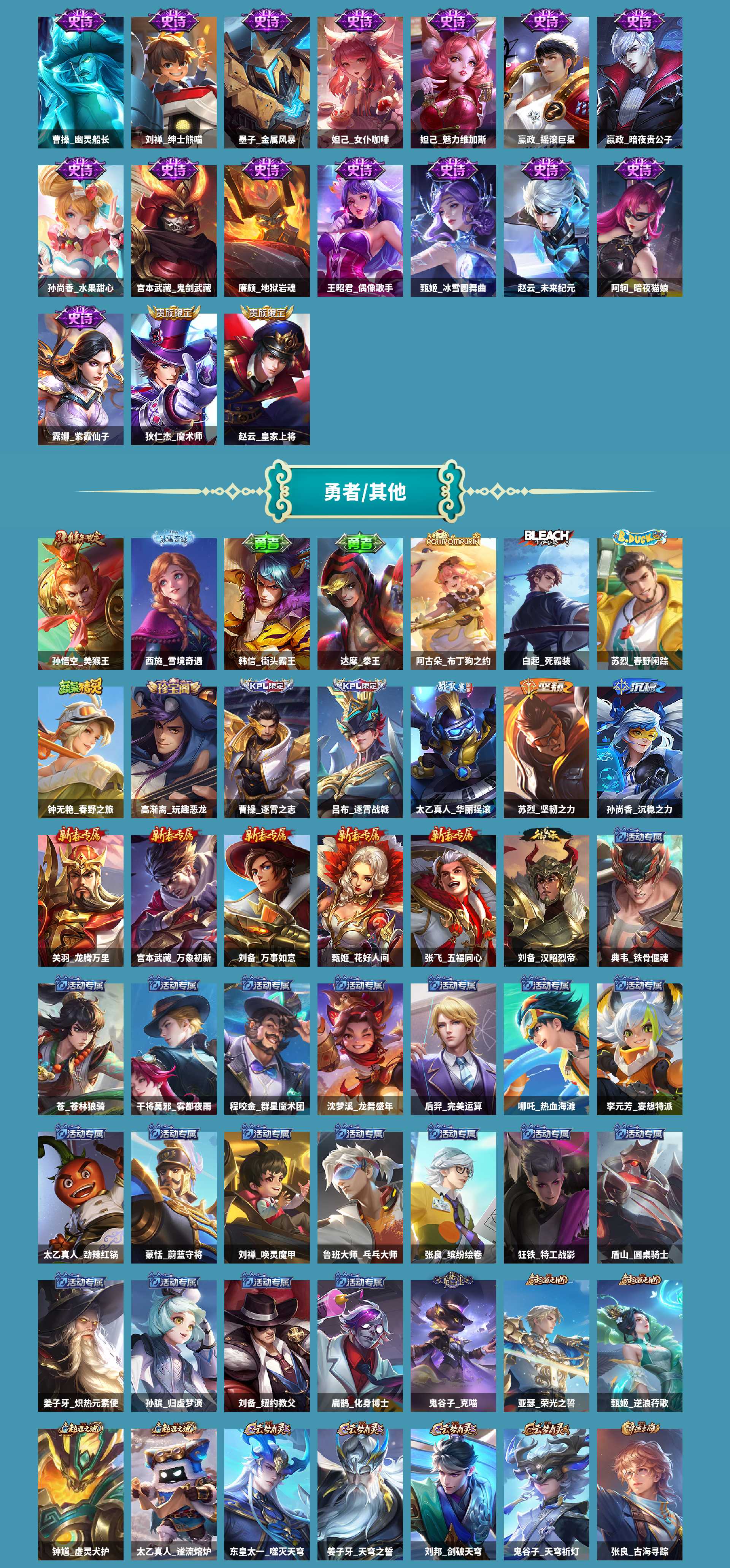 墨上天幕!诸葛+李白典藏!基德!白虎志!皮肤数量304印记总