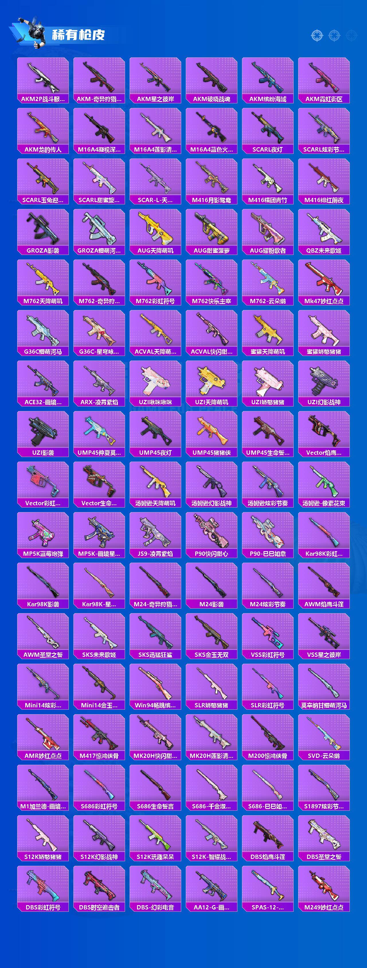 粉装6/粉枪13/珍稀飞行器,72316,/套装155/枪皮264/热力值74369/历史最高段位:王牌印记14次/Lv:63/七级M416-心之恋语/五级GROZA-镜光银凌/七级AUG-星之彼岸/五级AUG-暖羊咩咩/五级M762-青锋波束/四级ACE32-萌骑漫游/五级AKS-74U-森灵之息/五级Kar98K-巳巳如意/五级Mk14-甜梦熊击/五级Mk14-福马