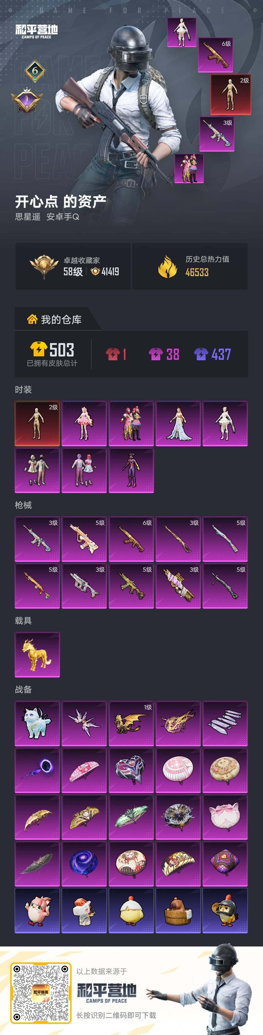 【特价出售/店主推荐】安卓 手Q-1神装-7粉装-10特效枪-1载具-6粉色飞行器-46533热力值-6王牌印记-73套装-145枪皮【红色神装等级】:沙丘之主-图卡盟(二级)【热门品类】:粉装-缤纷油彩,角色-8号机,角色-Mark.06【粉色套装】:粉装-宝贝奶油派,粉装-天使彩虹糖,粉装-缤纷油彩,角色-初号机 觉醒Ver.,角色-千金淑猫,角色-樱桃泡泡,角色-智耀战神【粉色枪皮等级】: