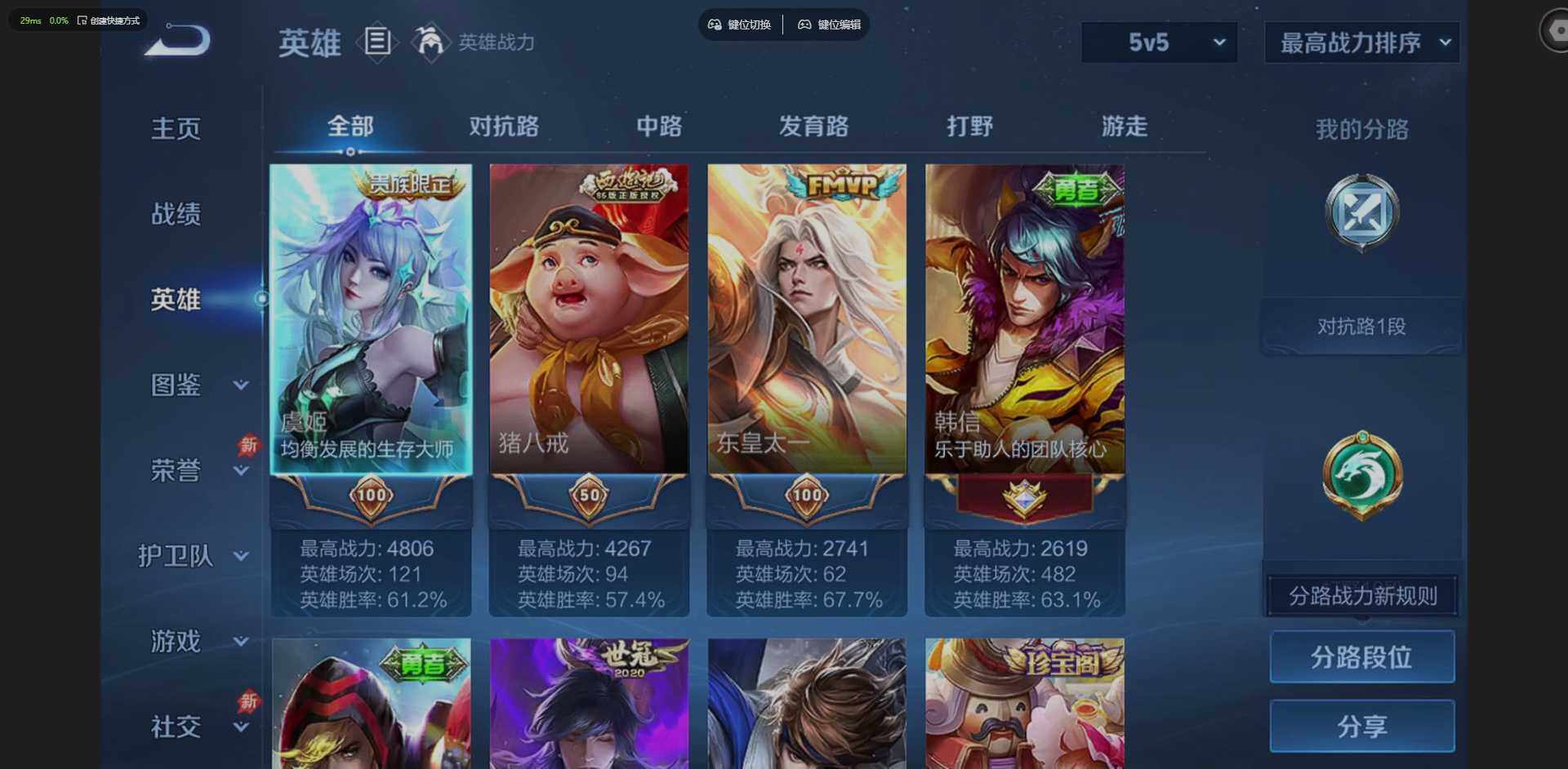 实名: 可修改 贵族等级: V8 英雄数: 128 皮肤数: 199 荣耀水晶