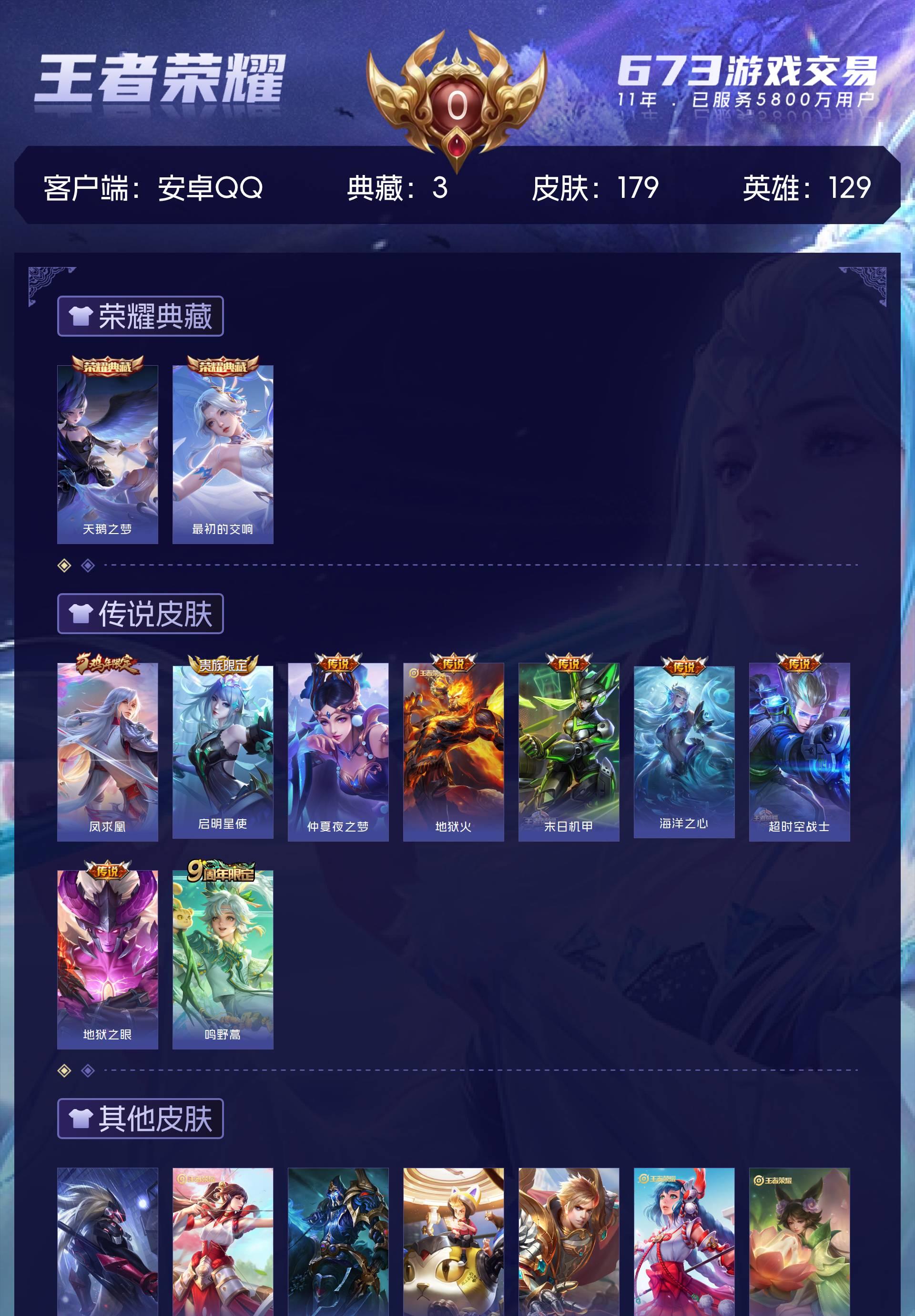 安卓QQ 可二次 皮肤179 英雄129 永恒钻石 荣耀典藏3 传说9