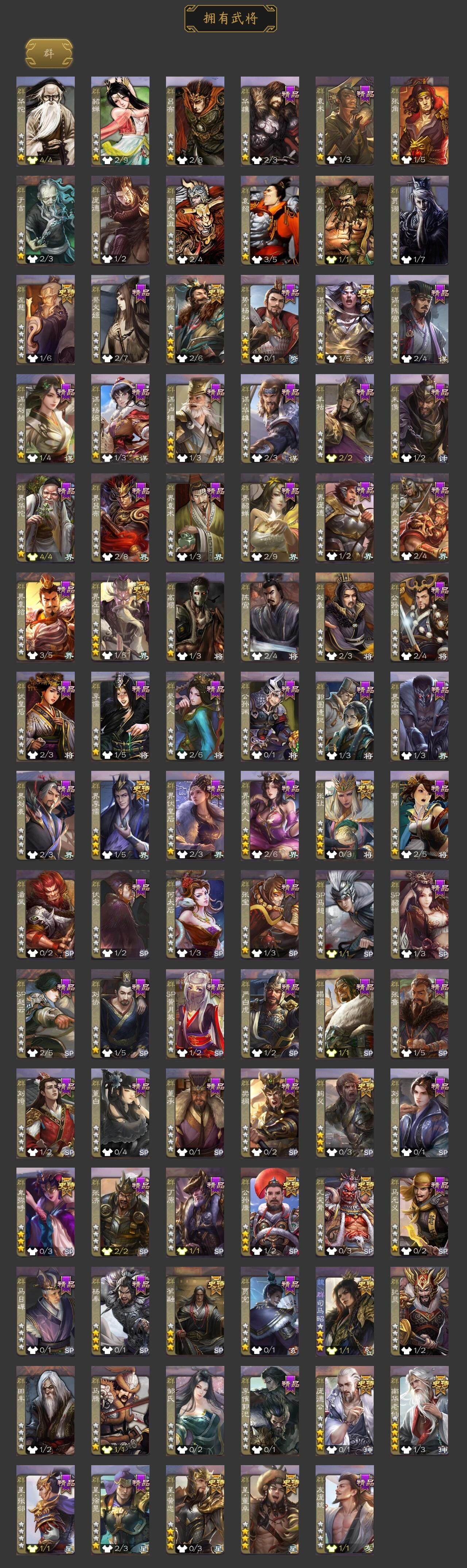 神吕布,神赵云,神陆逊,神太史慈,星周不疑,界钟会,界曹真,曹纯,戏志才,程昱,谋诸葛亮,谋赵云,谋马超,诸葛瞻,赵襄,沙摩柯,花鬘,董允,吴景,界徐盛,贺齐,势太史慈,左慈,张让,