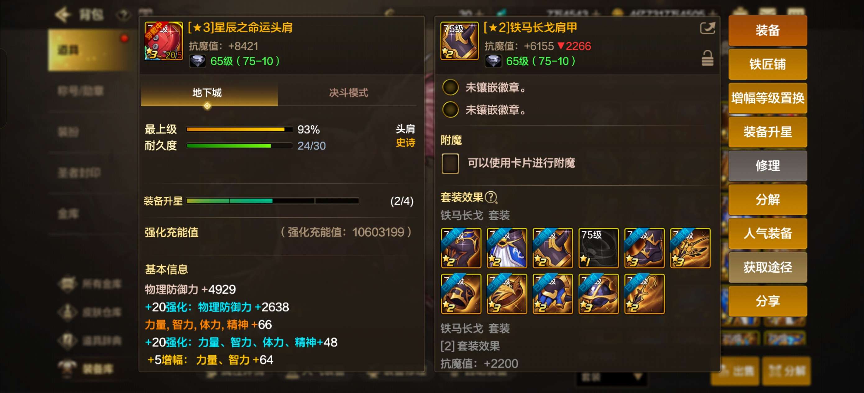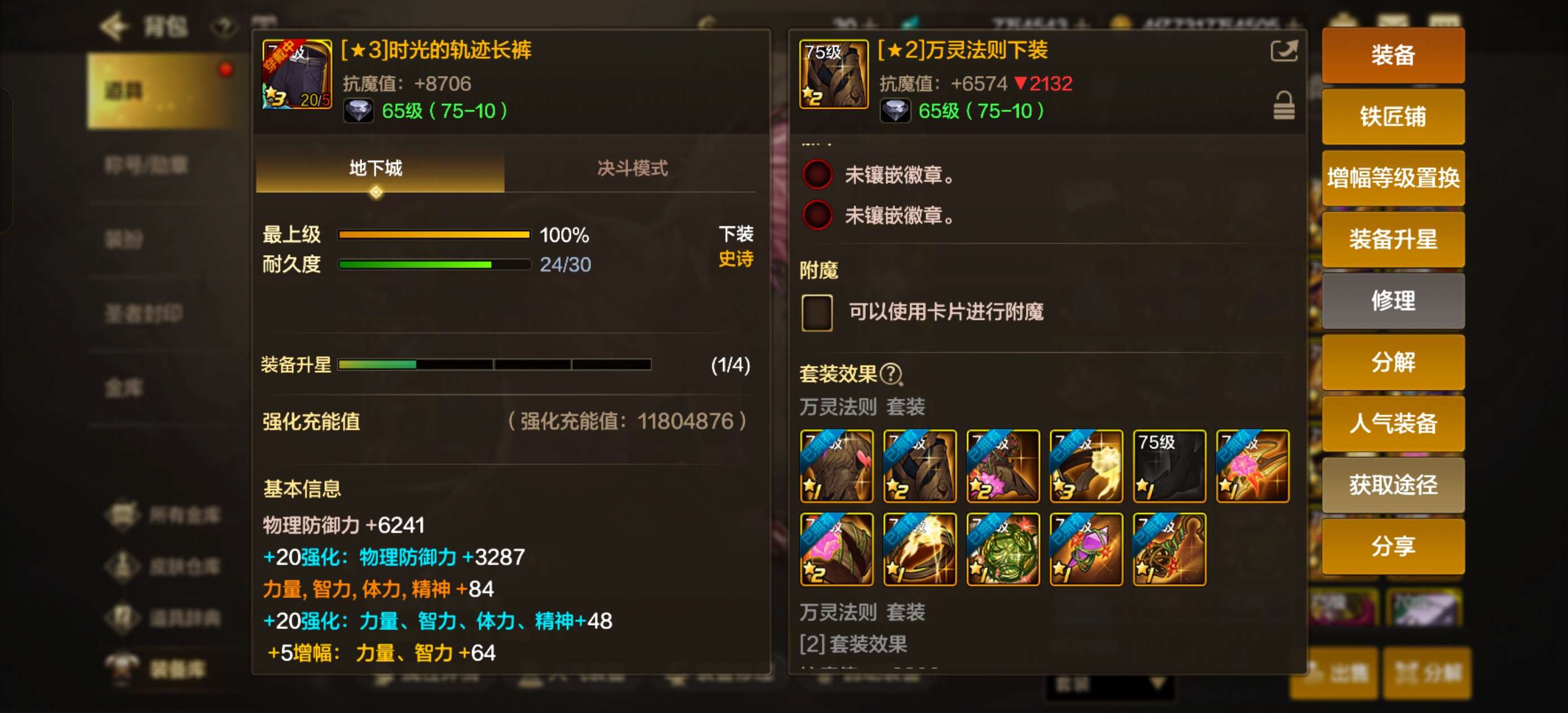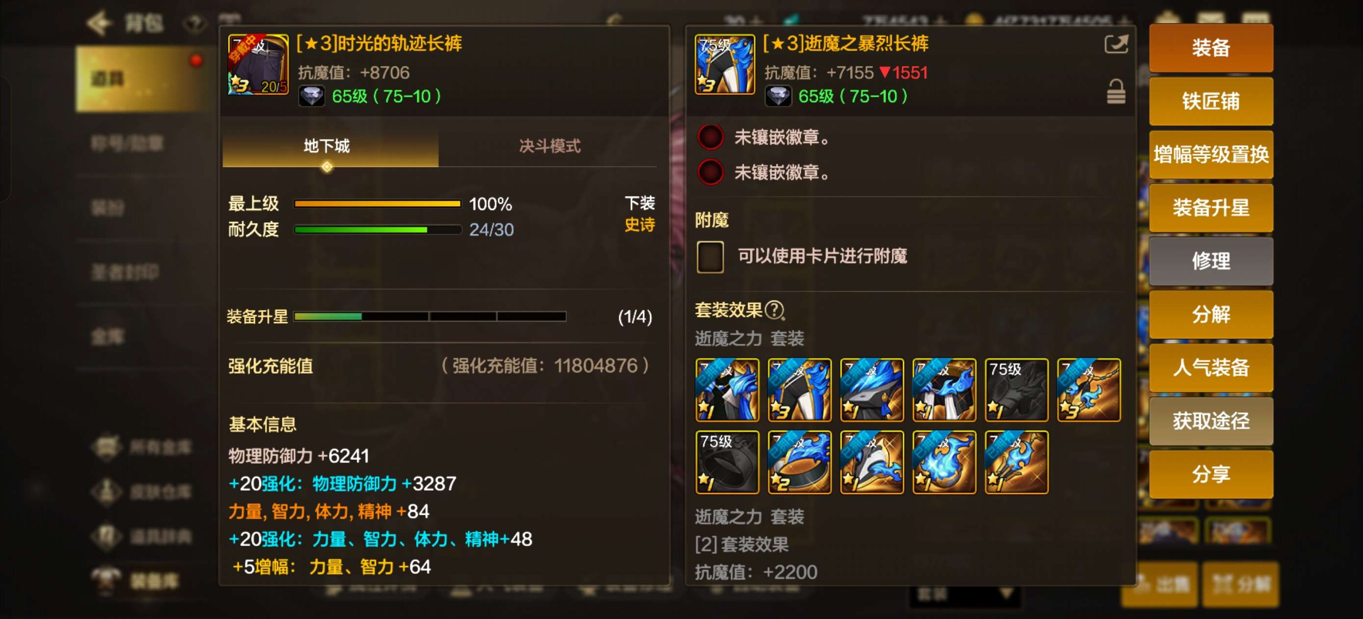 全身20+,抗魔14+w 天空一套,75级史诗套,几乎全部齐了,