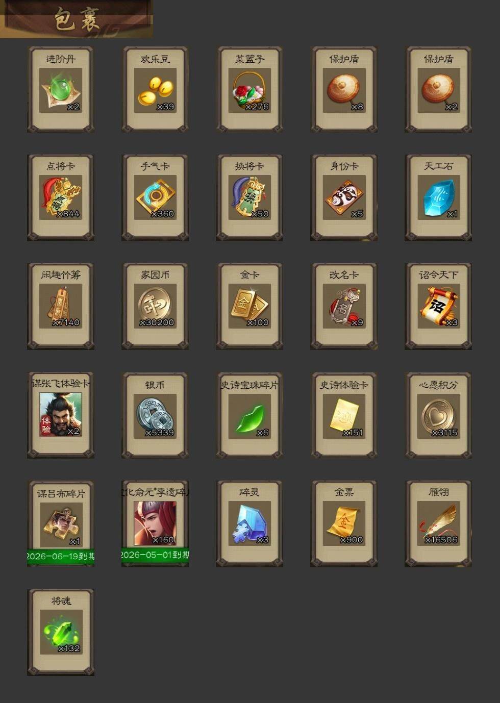 官阶:中军将军;VIP等级:VIP3;史诗武将数量:7;动态皮肤数量:1;武将总数:181;史诗宝珠数量:0;将魂数量:132;神将:0;魏国史诗武将:2;蜀国史诗武将:1;吴国史诗武将:0;群史诗武将:3