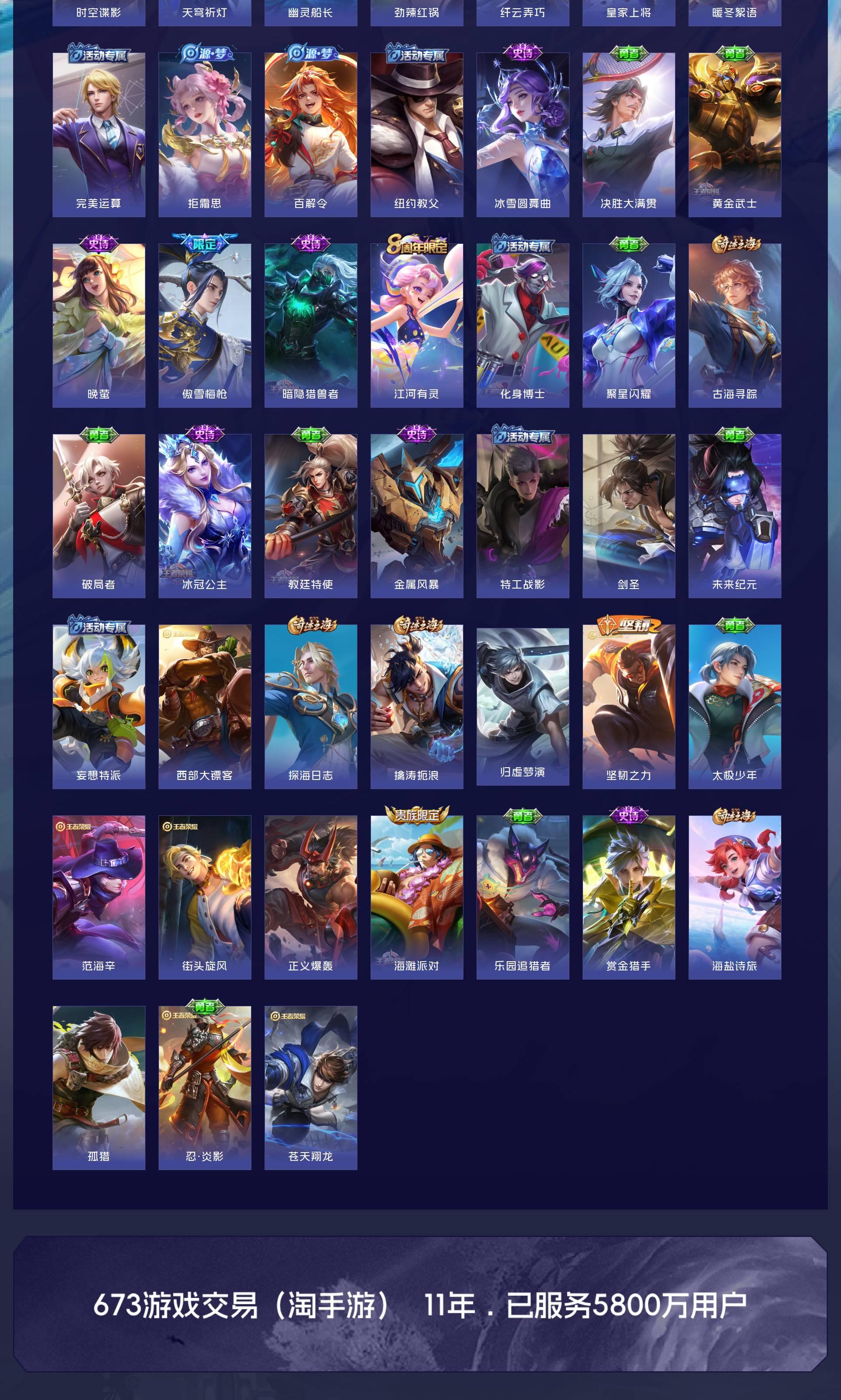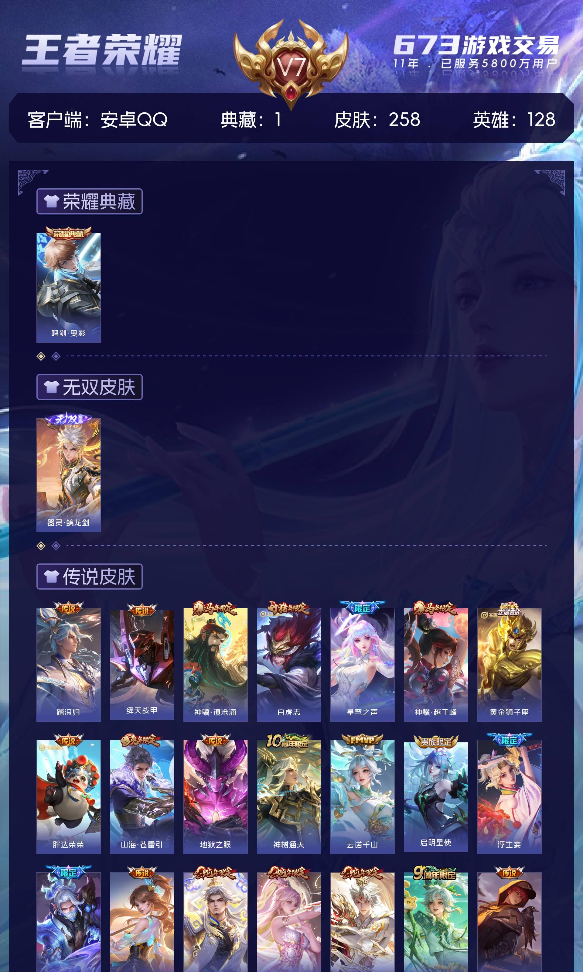 V7 皮肤258 英雄128 永恒钻石 荣耀典藏1 无双皮肤1 星传说1 传说32