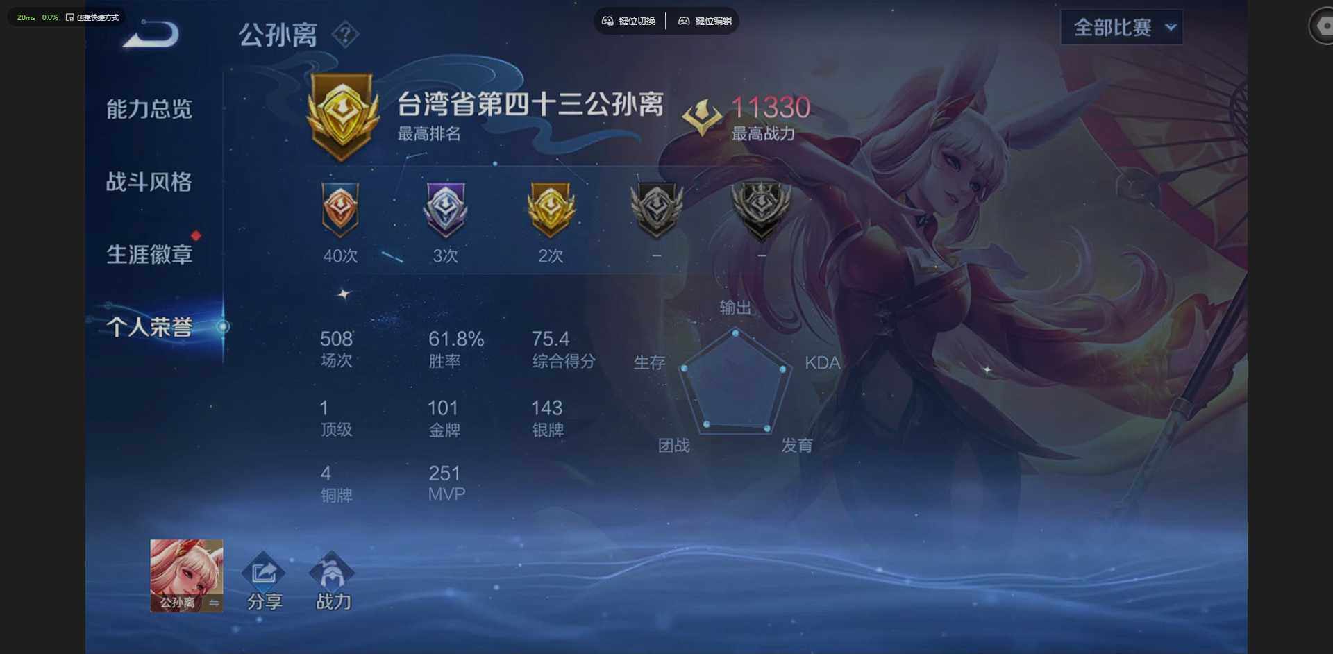 【金标公孙离 金标韩信 金标苍】实名: 可修改 贵族等级: V8 英雄数: 1