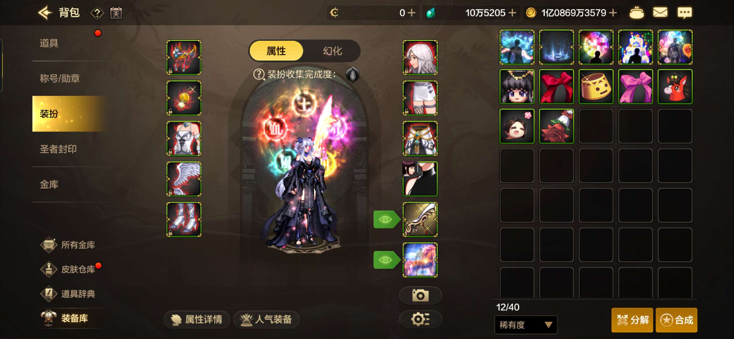 四姨,套装基本都齐了,抗魔值144560,武器增幅10