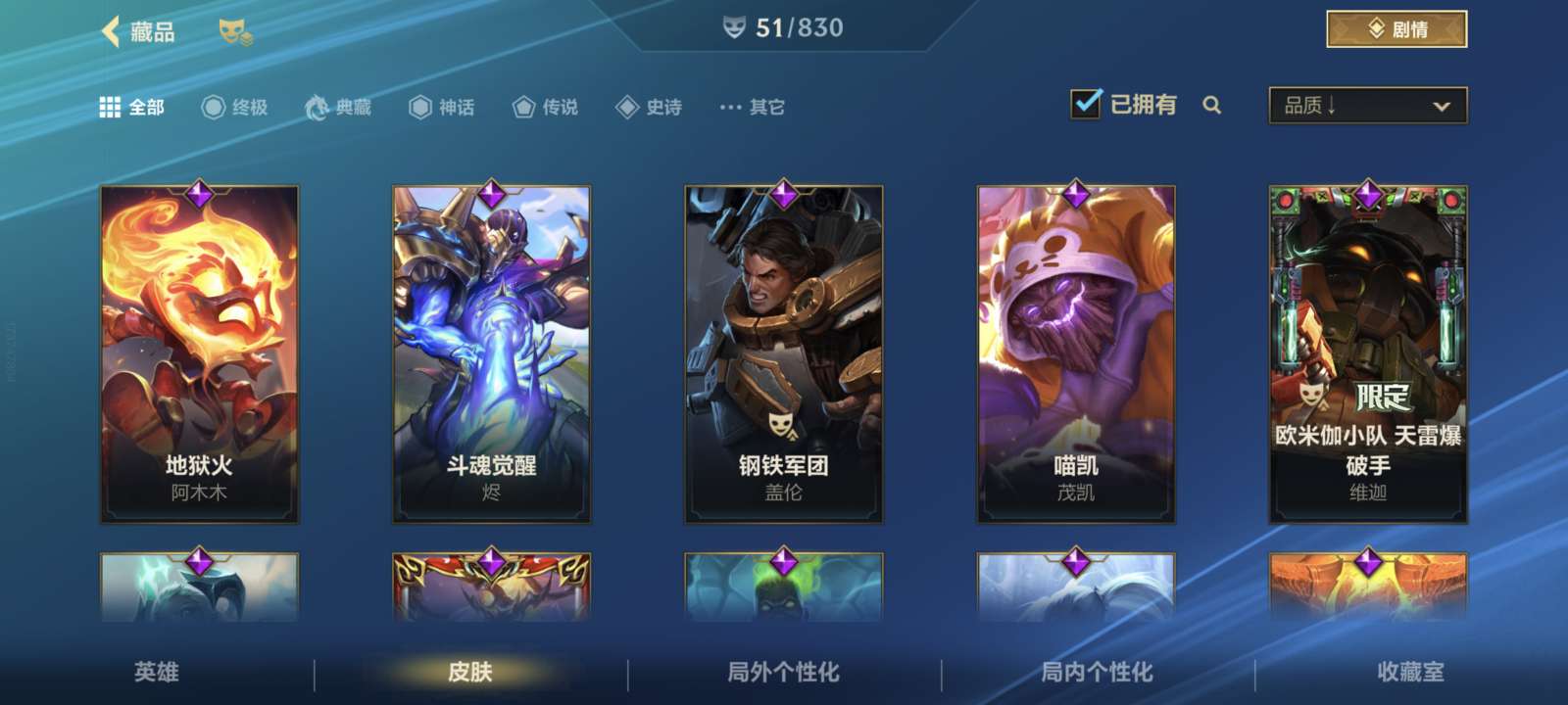 101级,王者段位,66个英雄,51个皮肤2神话1传说,2万多精粹
