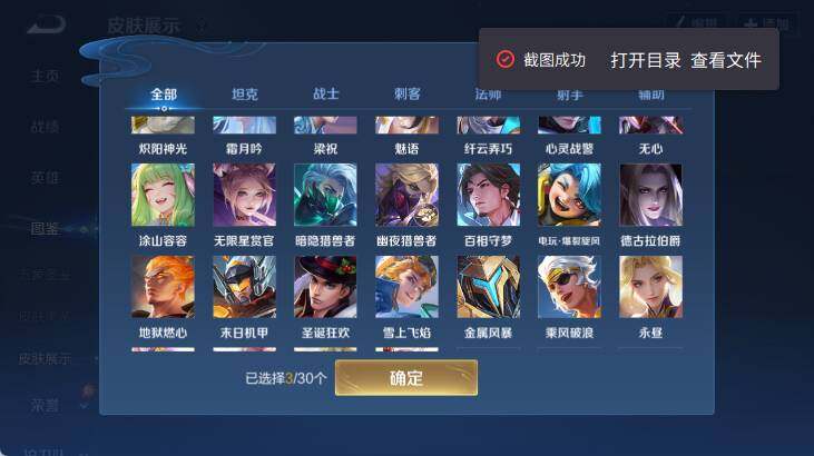 【限定皮肤】:白起狰,姜子牙天穹之誓,狄仁杰阴阳师,赵云皇家上将,墨子神迹守卫,孙尚香蔷薇恋人,鲁班七号狮舞东方,庄周高山流水,元歌无心