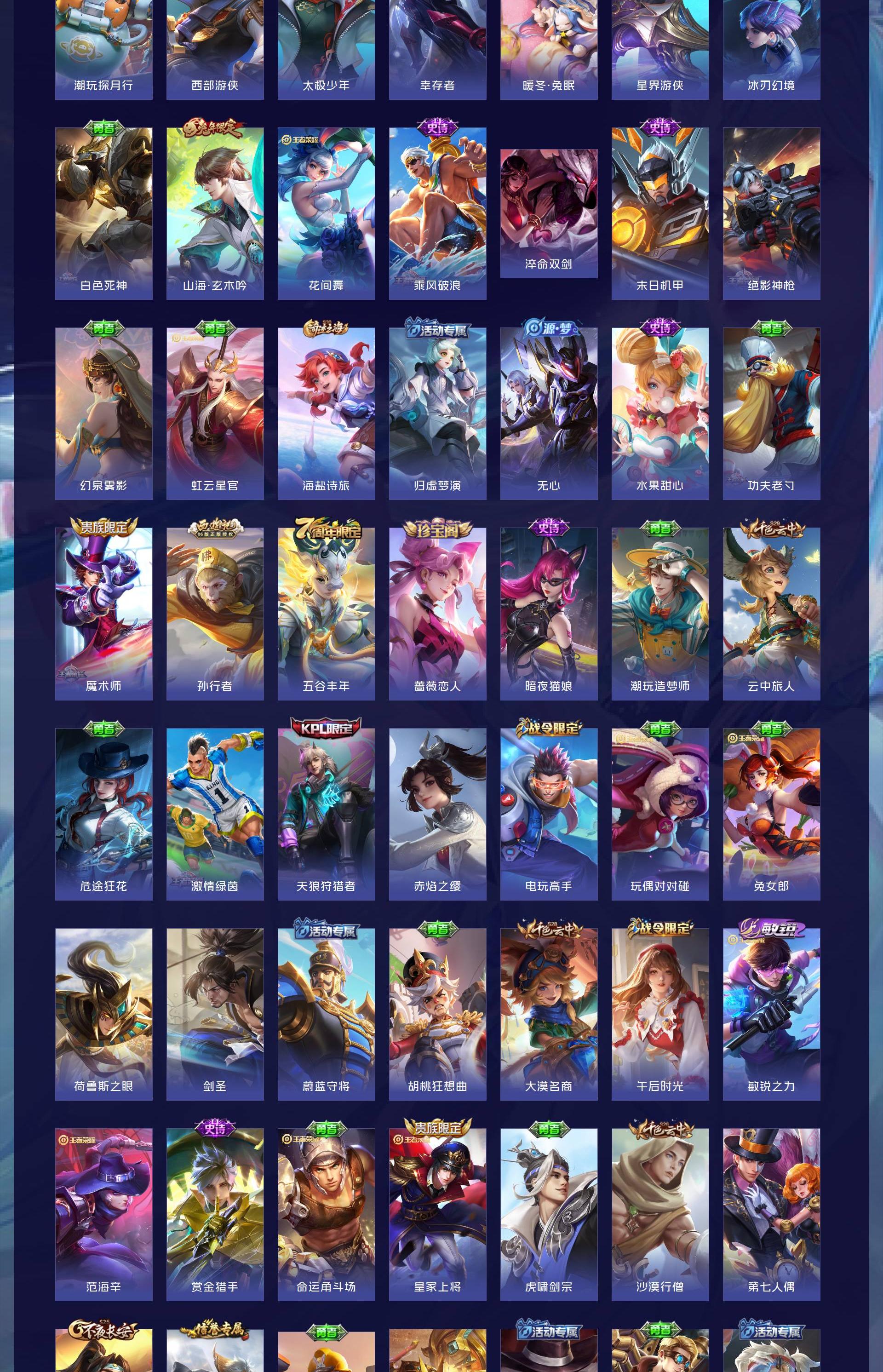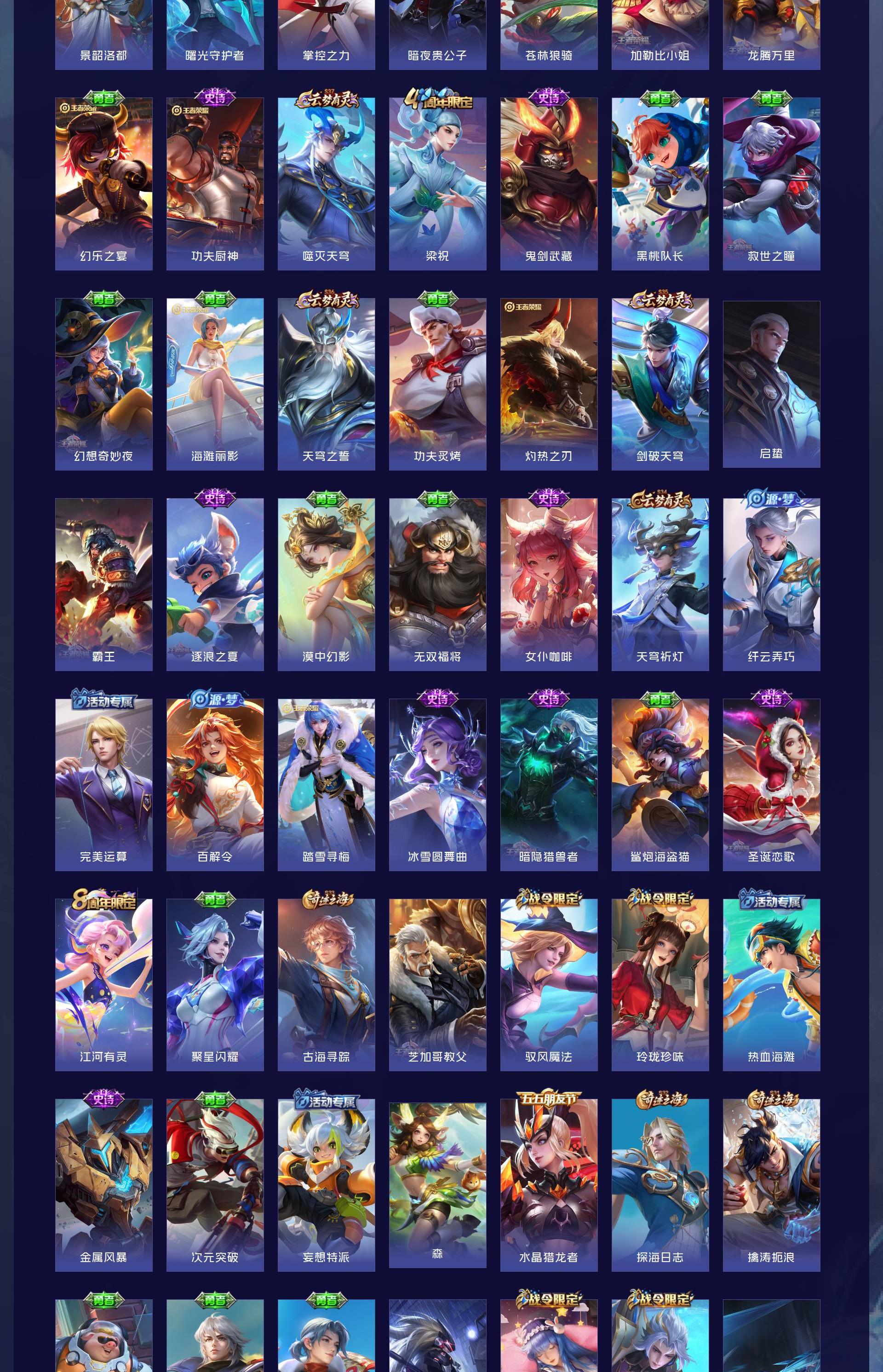 有几个稀有传说限定皮肤,荣耀水晶也快抽满了,有两个万战
