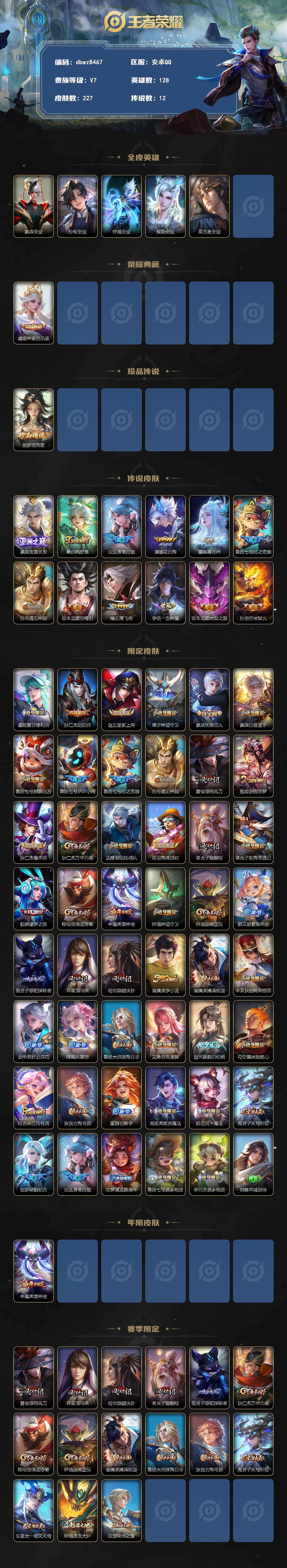 V7-最强王者段位-128英雄-227皮肤-1典藏皮肤-1珍品传说