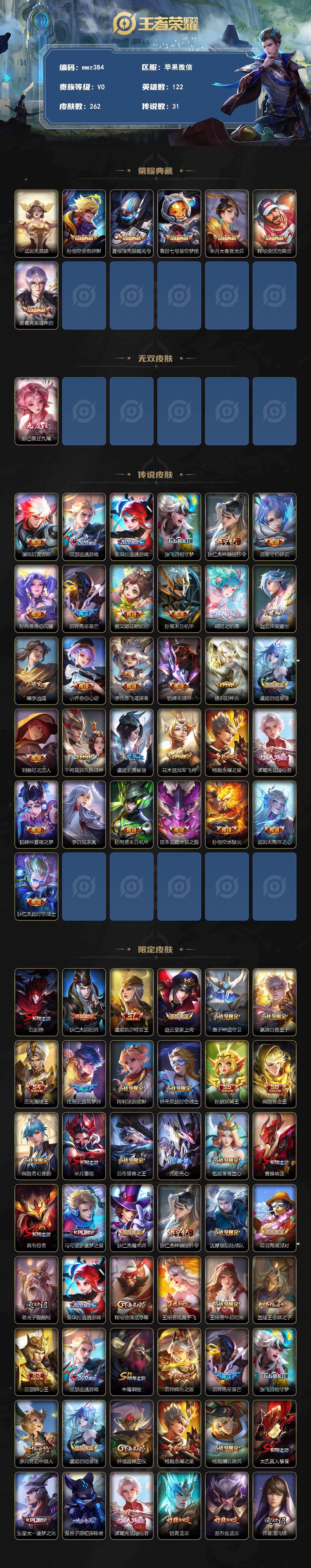 【mwz384】苹果WX-V0-永恒钻石V段位-122英雄-262皮肤-6典藏