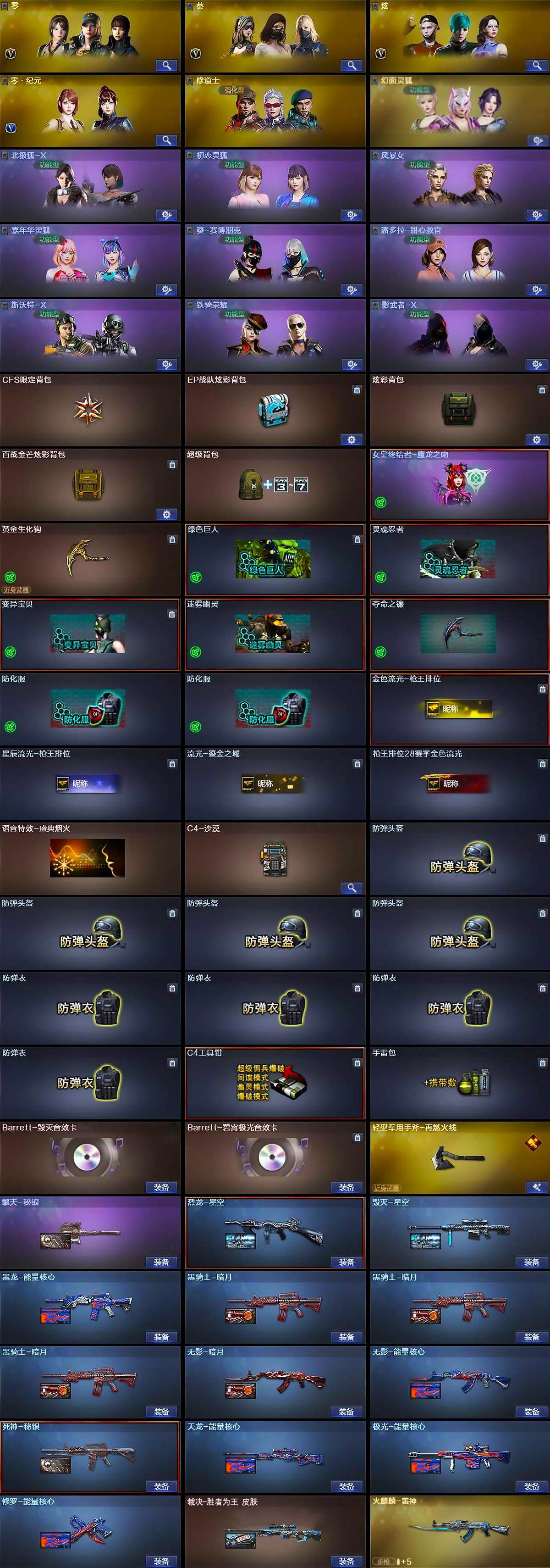 广东一区-81V-7王者武器数-1炫金武器数【热门武器】:死亡之眼,M4A1-黑骑士,汤姆逊-烈龙*8,RPK-盘龙*3,沙鹰-修罗【王者炫金武器】:超新星-悦享,炼狱-悦蓝*2,王者之霆,炫金骑士【音效卡】:Barrett-毁灭音效卡,Barrett-碧霄极光音效卡【皮肤】:裁决-胜者为王 皮肤,烈龙-星空,火麒麟-雷神,毁灭-星空,黑龙-能量核心,黑骑士-暗月*3,无影-暗月,无影-能量核心,死神-秘银,天龙-能量核心,极光-能量核心,修罗-能量核心,轻型军用手斧-再燃火线,擎天-秘银【角色
