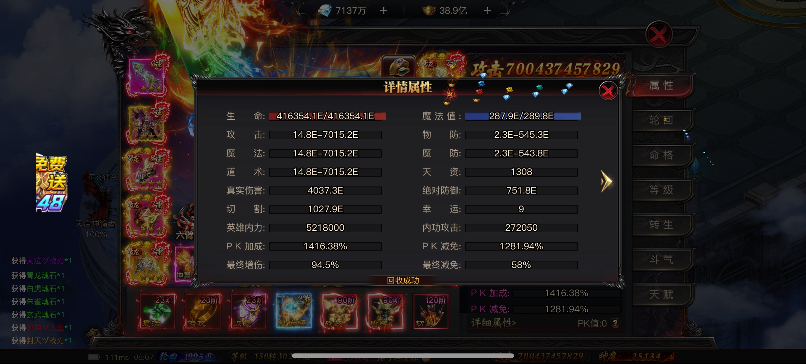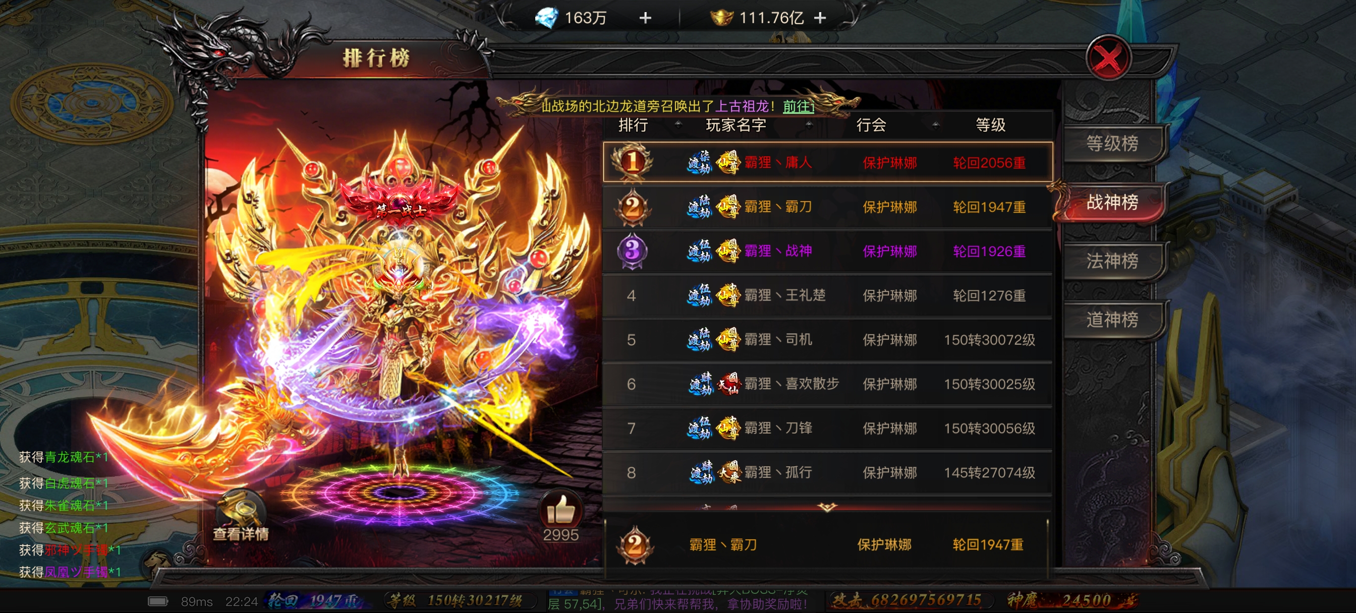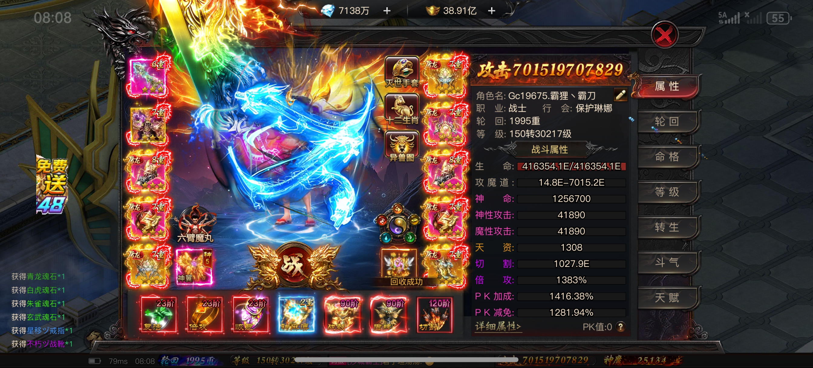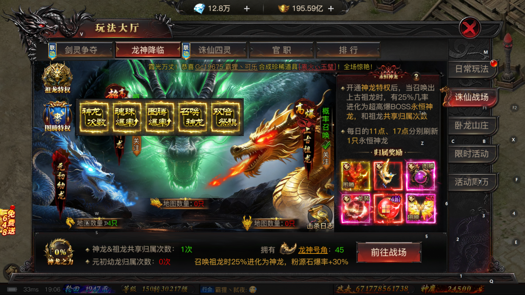 公测区7000亿大战士,十倍拉满,八件屠龙,特权全齐