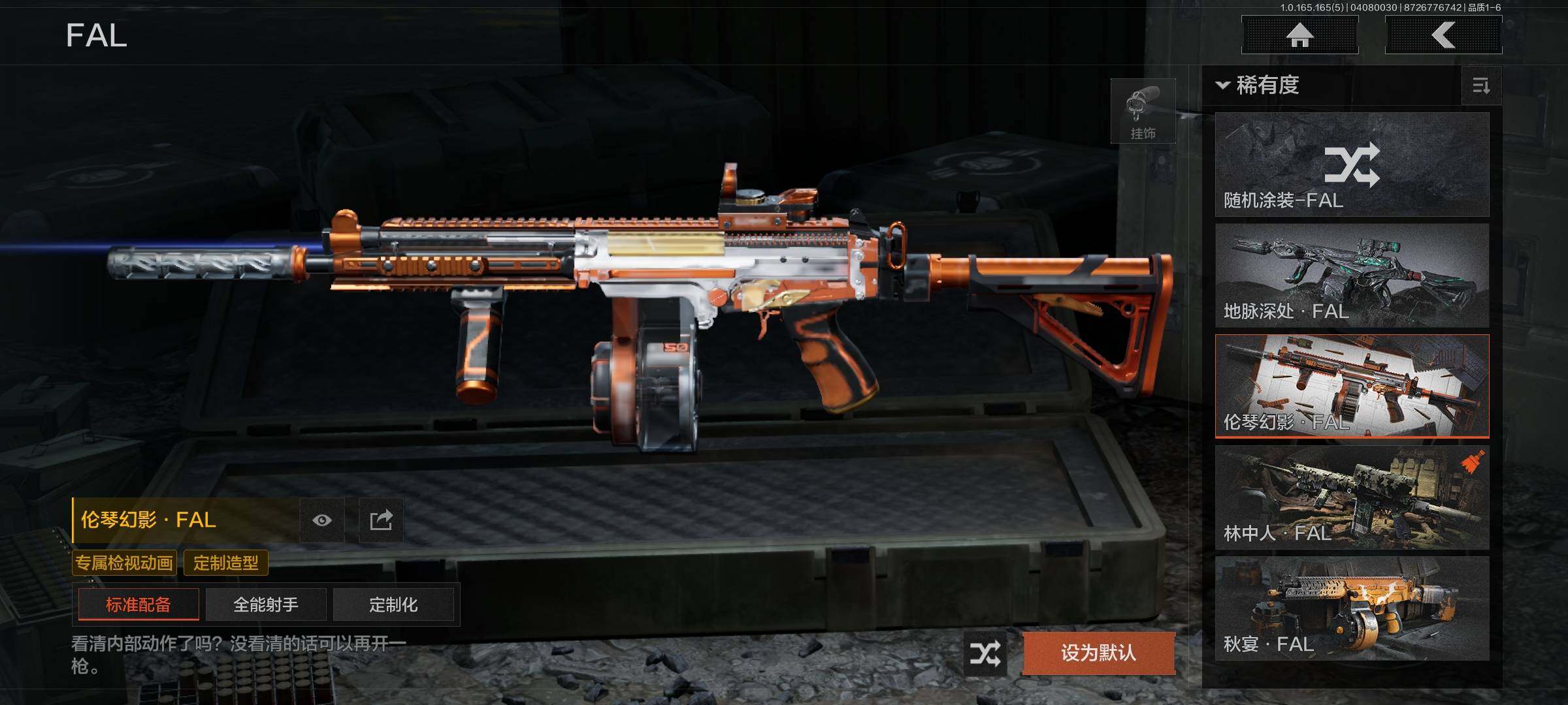 【金色枪皮】:地脉深处FAL,伦琴幻影·FAL,旗帜·AEK,镀火熔金·H416,骑士之剑·VSS,利齿风暴·MPX,浮鳞影青·QBZ192,