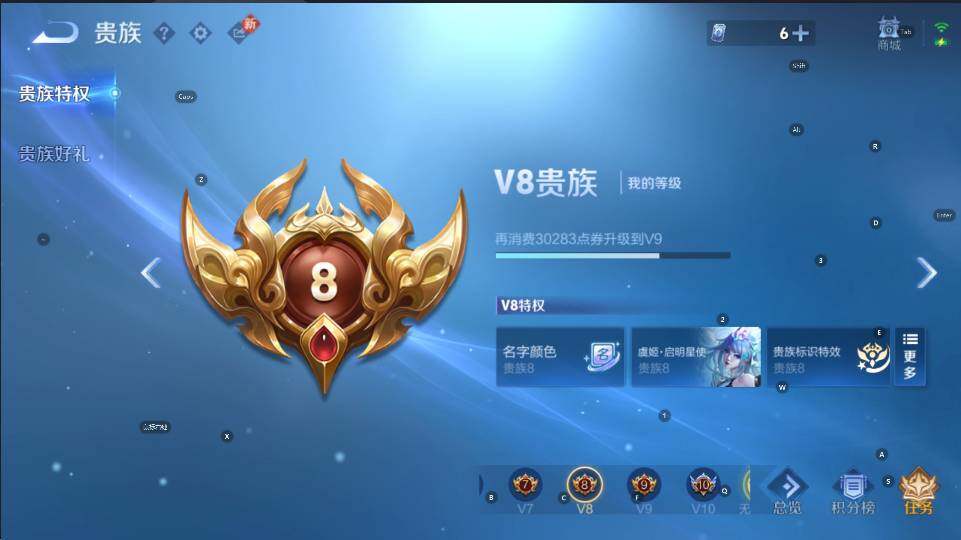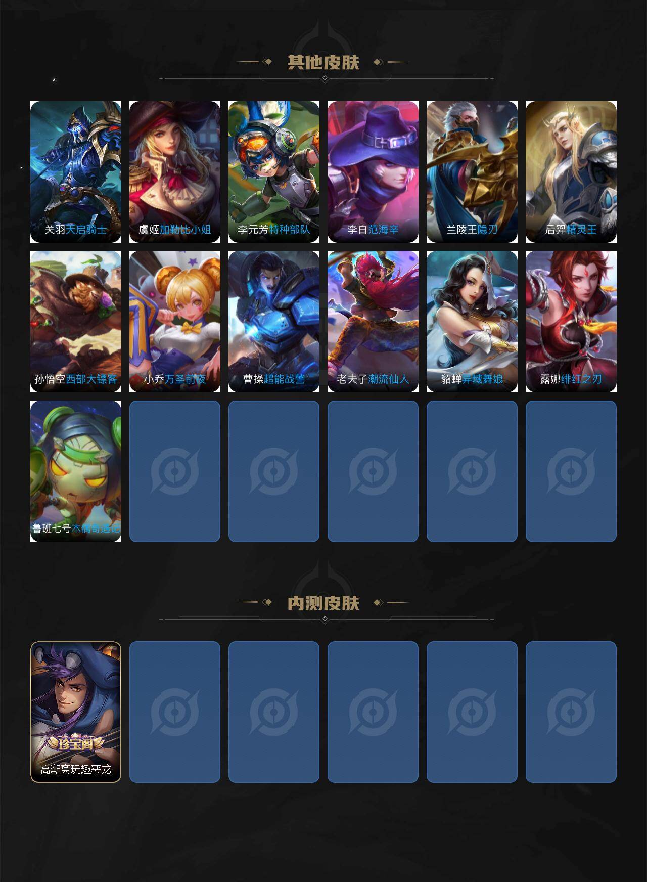 贵族8/皮肤201/典藏1/传说14/史诗53/英雄128/孙权全皮/敖隐全皮/