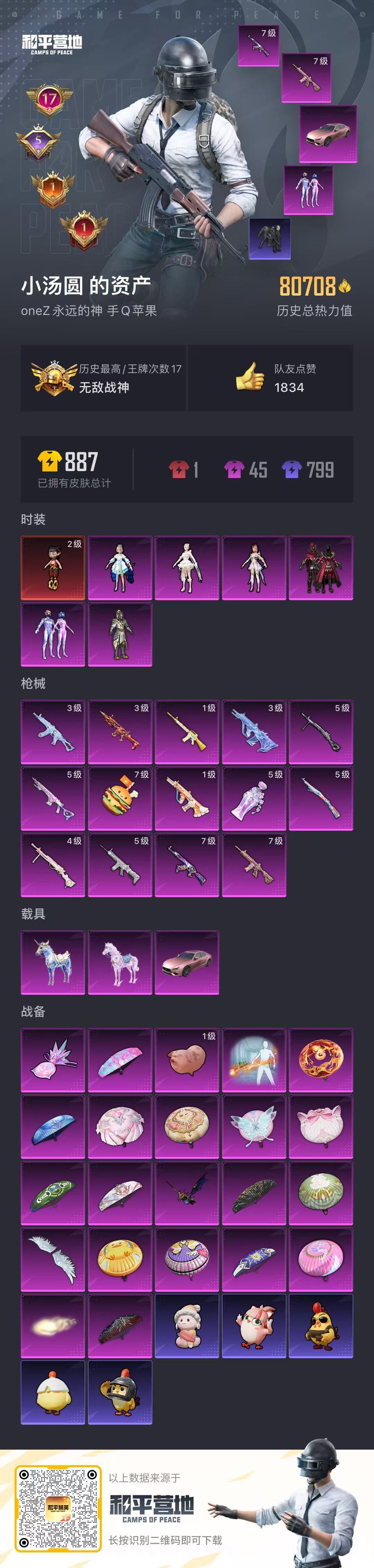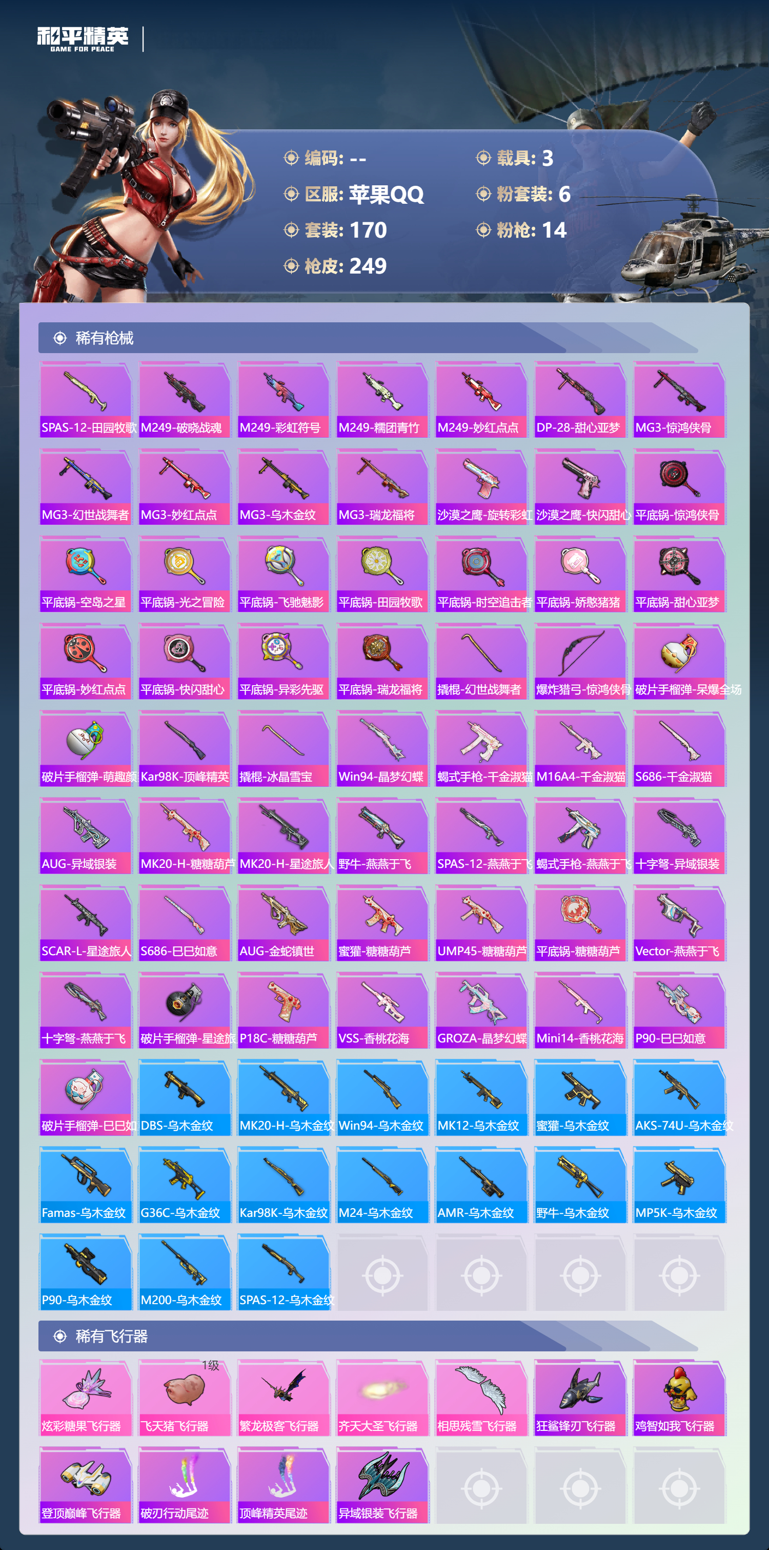 【都市3载具14把枪】苹果手Q-17王牌印记-有战神框-1红装-6粉装-14特效