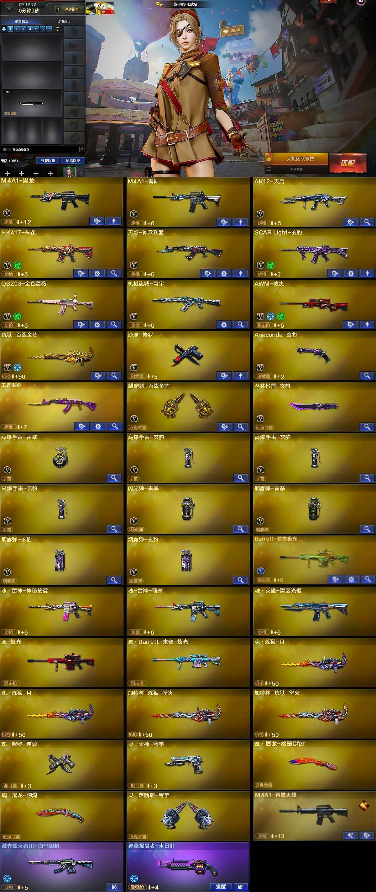【皮肤】:白虎-百战金芒 皮肤,裁决-运输船 皮肤,雷神-荣耀之魄,雷神-高能霹雳 皮肤,M4A1-再燃火线,雷神-神秘按键 皮肤,轻型军用手斧-再燃火线
