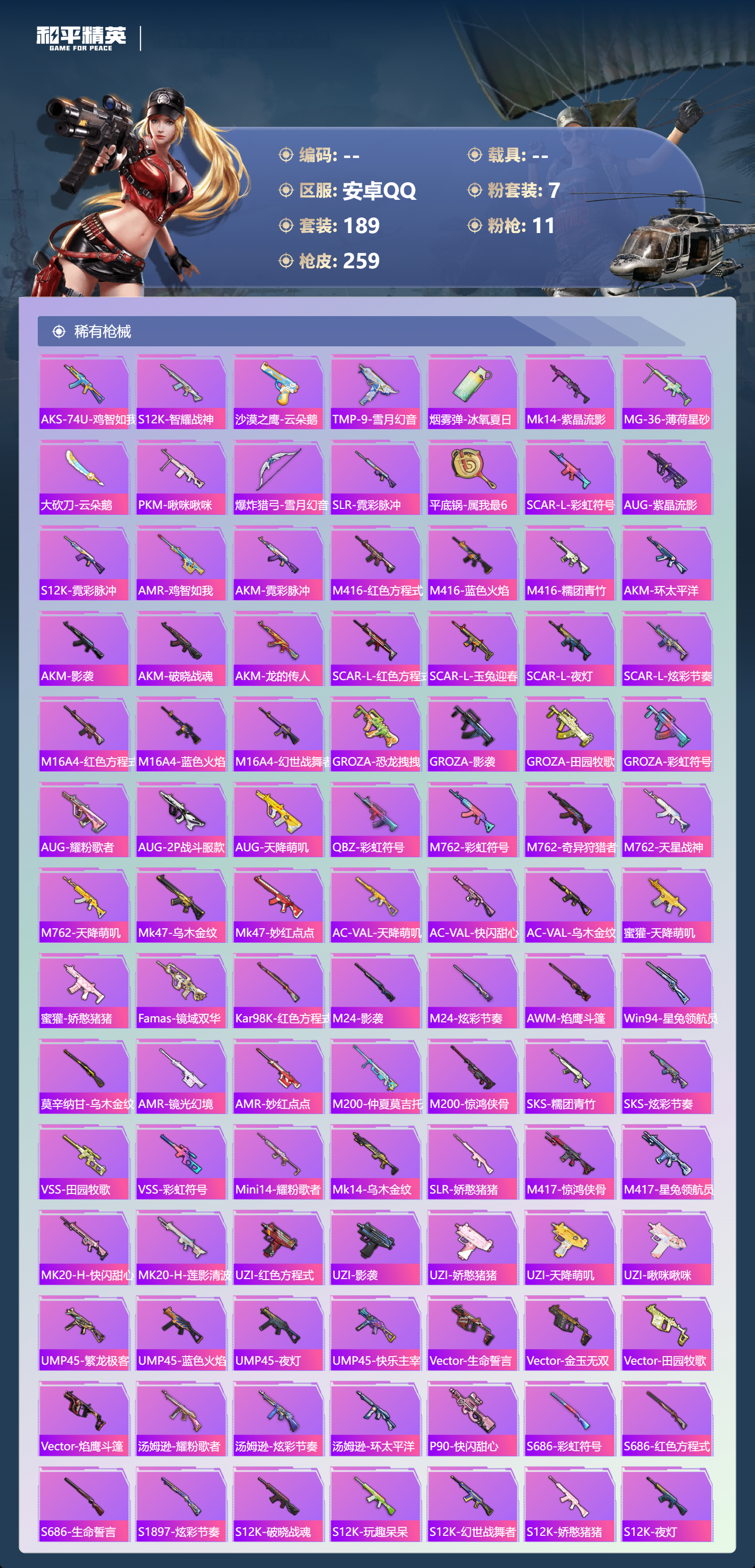 9王牌印记-7粉装-11特效枪-72751热力值-189套装