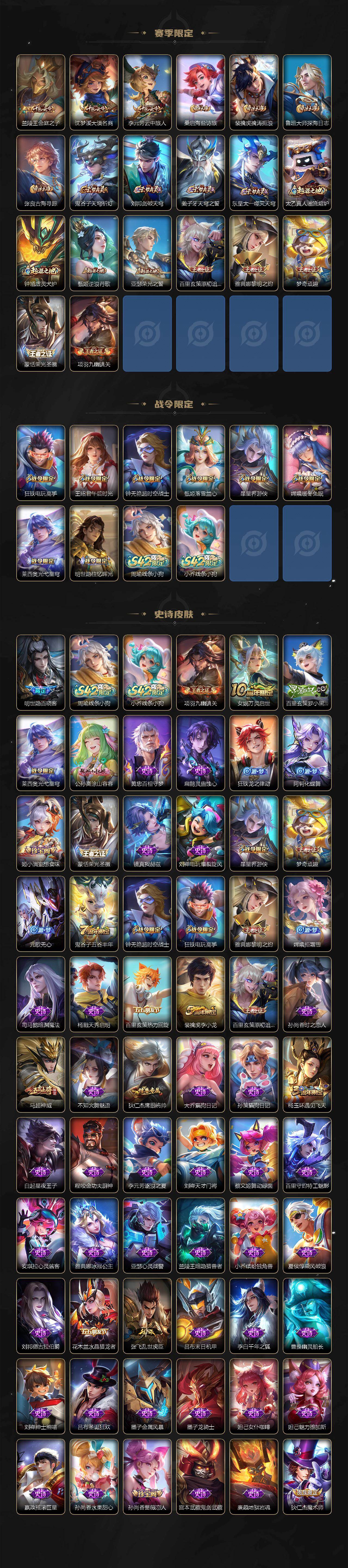 安卓Q-V7-永恒钻石I段位-128英雄-269皮肤-1典藏皮肤-2珍品传说-8传说-71史诗