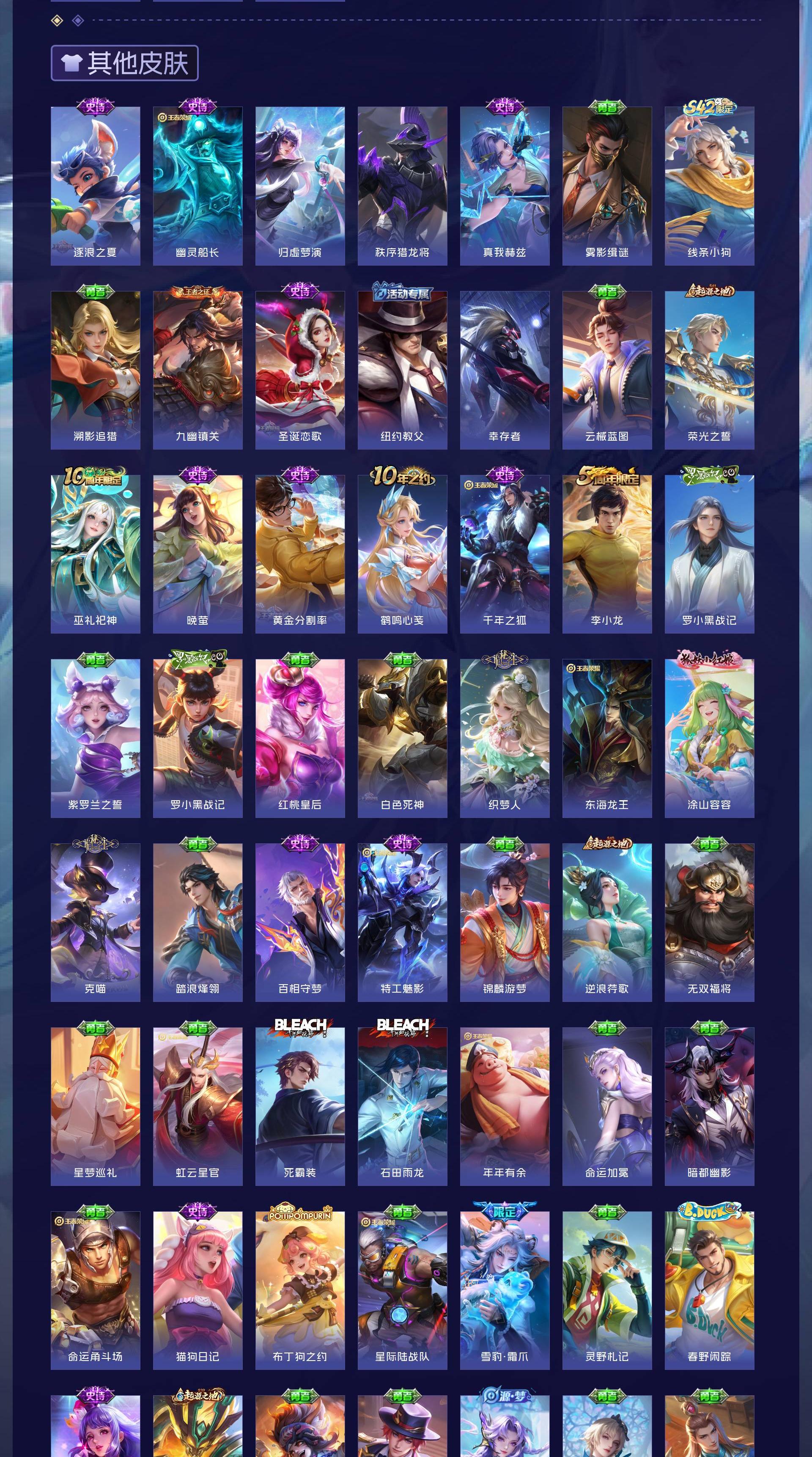 V7 皮肤220 英雄128 至尊星耀 荣耀典藏1 无双皮肤1 珍品传说2 传说11