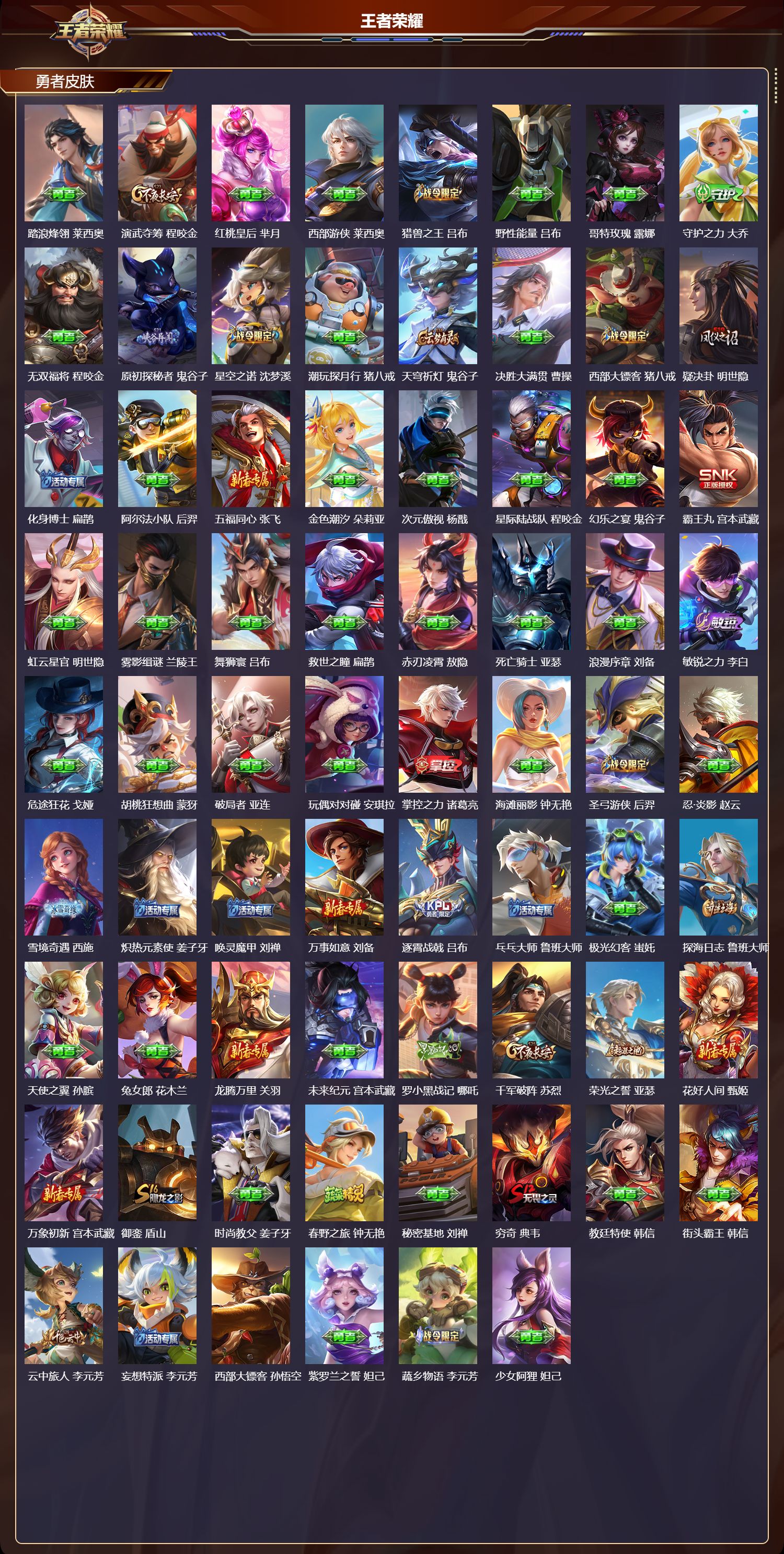 安卓QQ/至圣王者/298皮肤/128英雄/2典藏/0珍品无双/4无双/1珍品传
