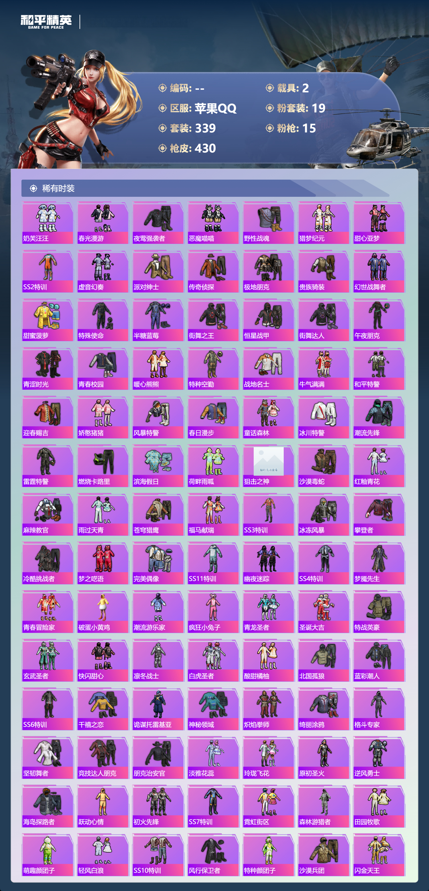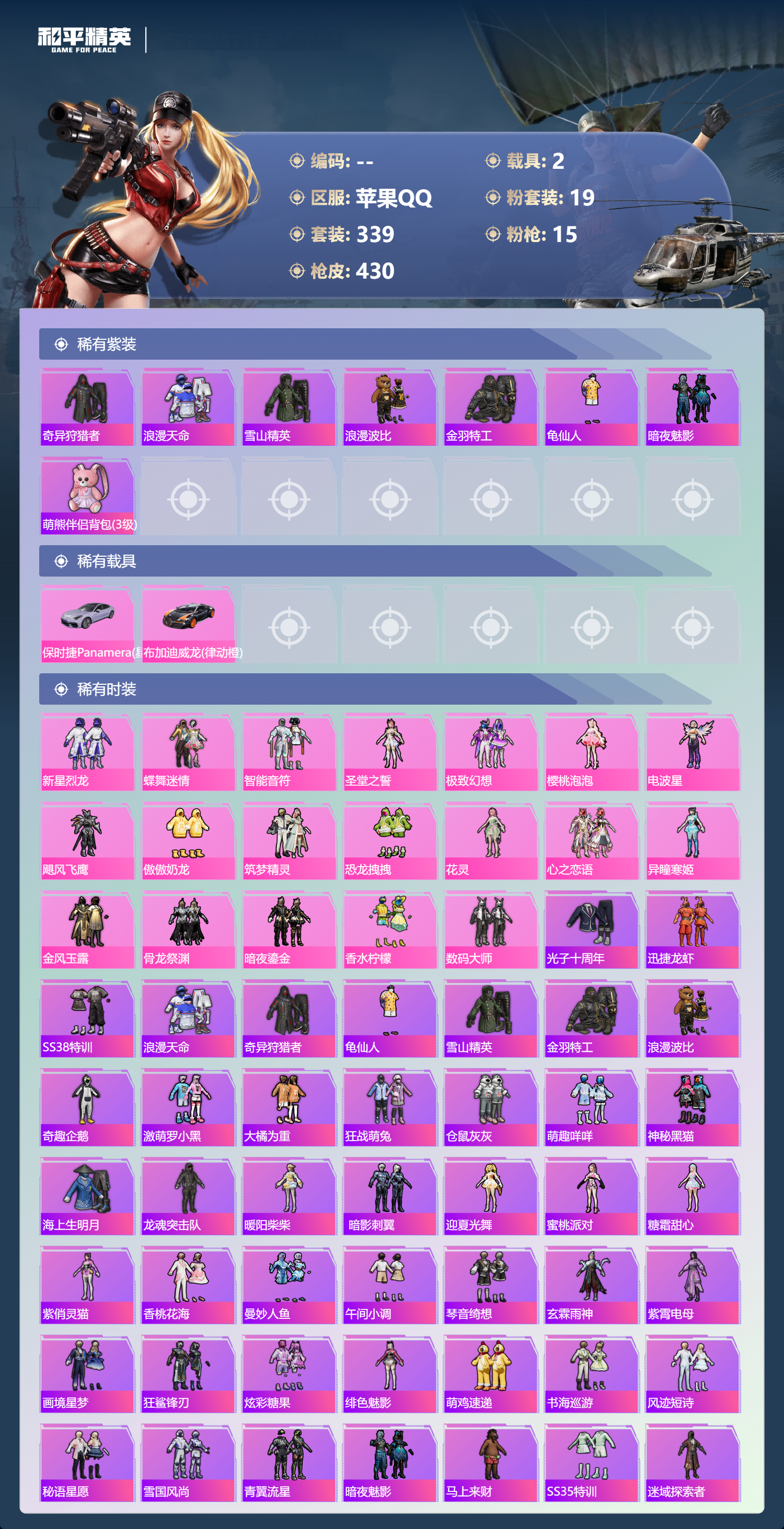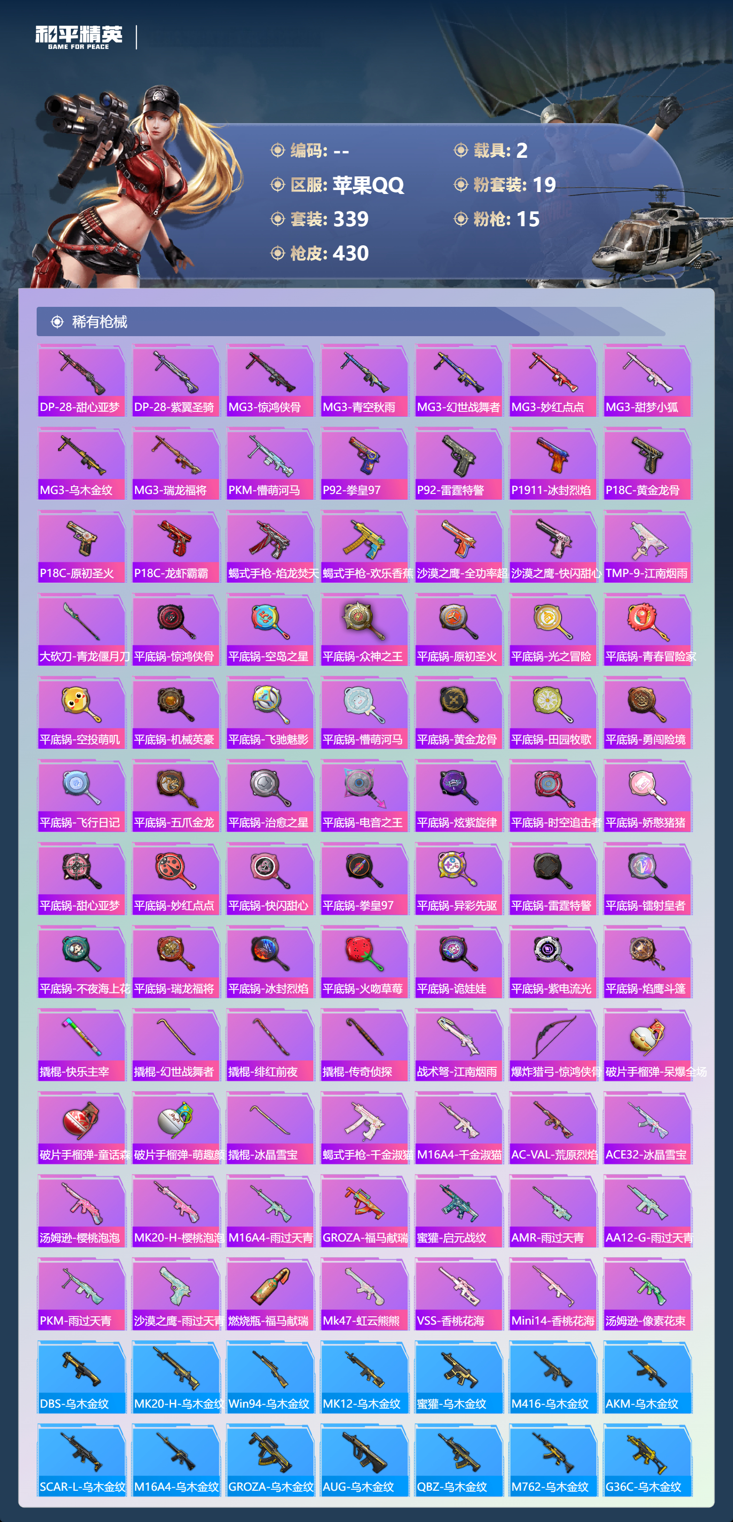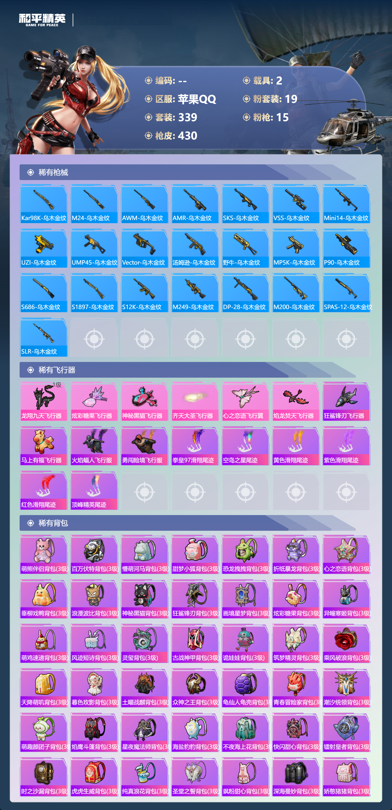 苹果手Q-26王牌印记-19粉装-15特效枪-2载具-热力值-3