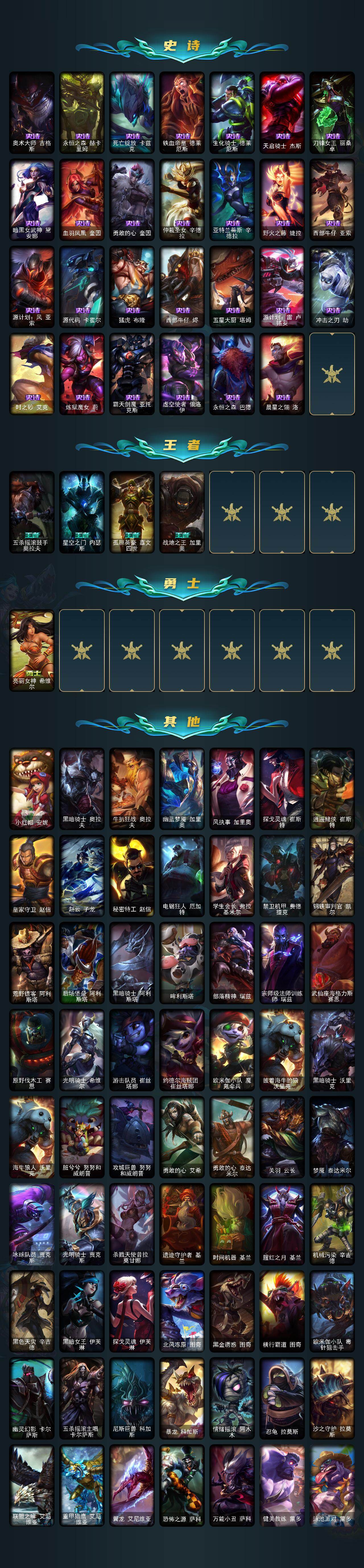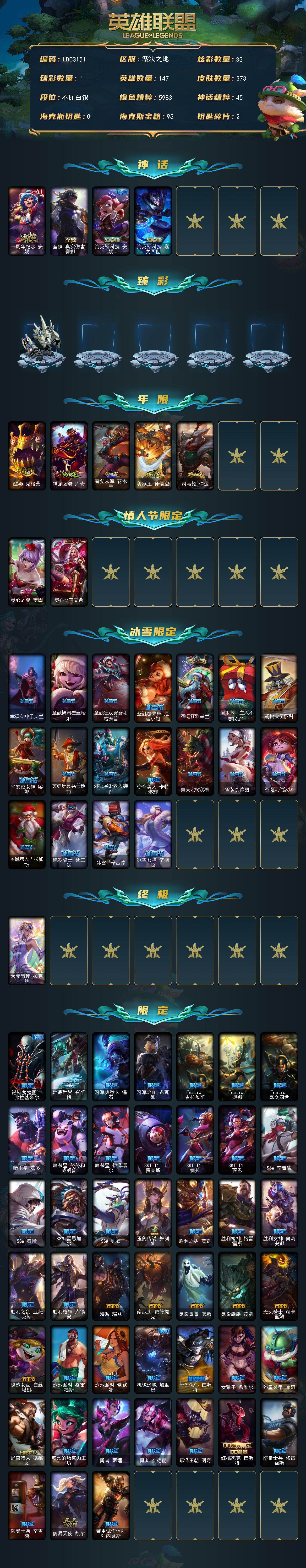 白银段位-147英雄-373皮肤-35炫彩-1终极-4神话-70限定-27传说-104史诗