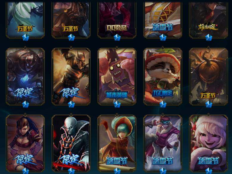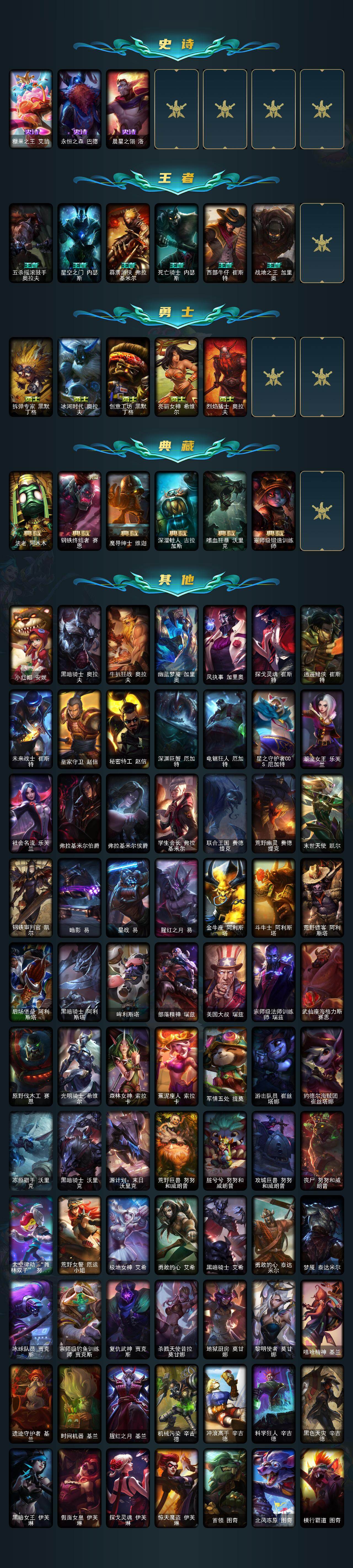 未定级段位-172英雄-589皮肤-113炫彩-1终极-6神话-79限定-49传说-157史诗