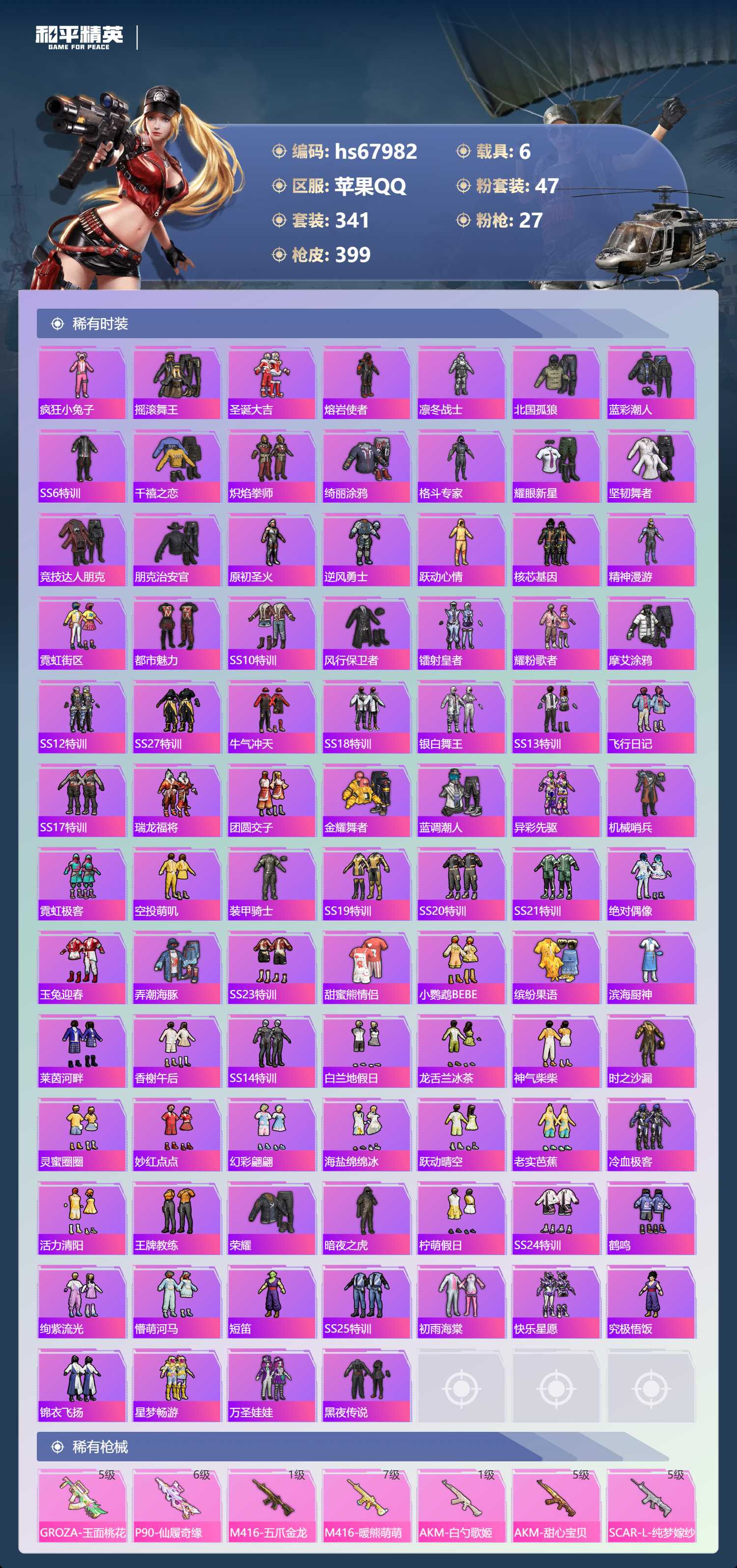 苹果手Q-21王牌印记-47粉装-27特效枪-6载具-热力值-3