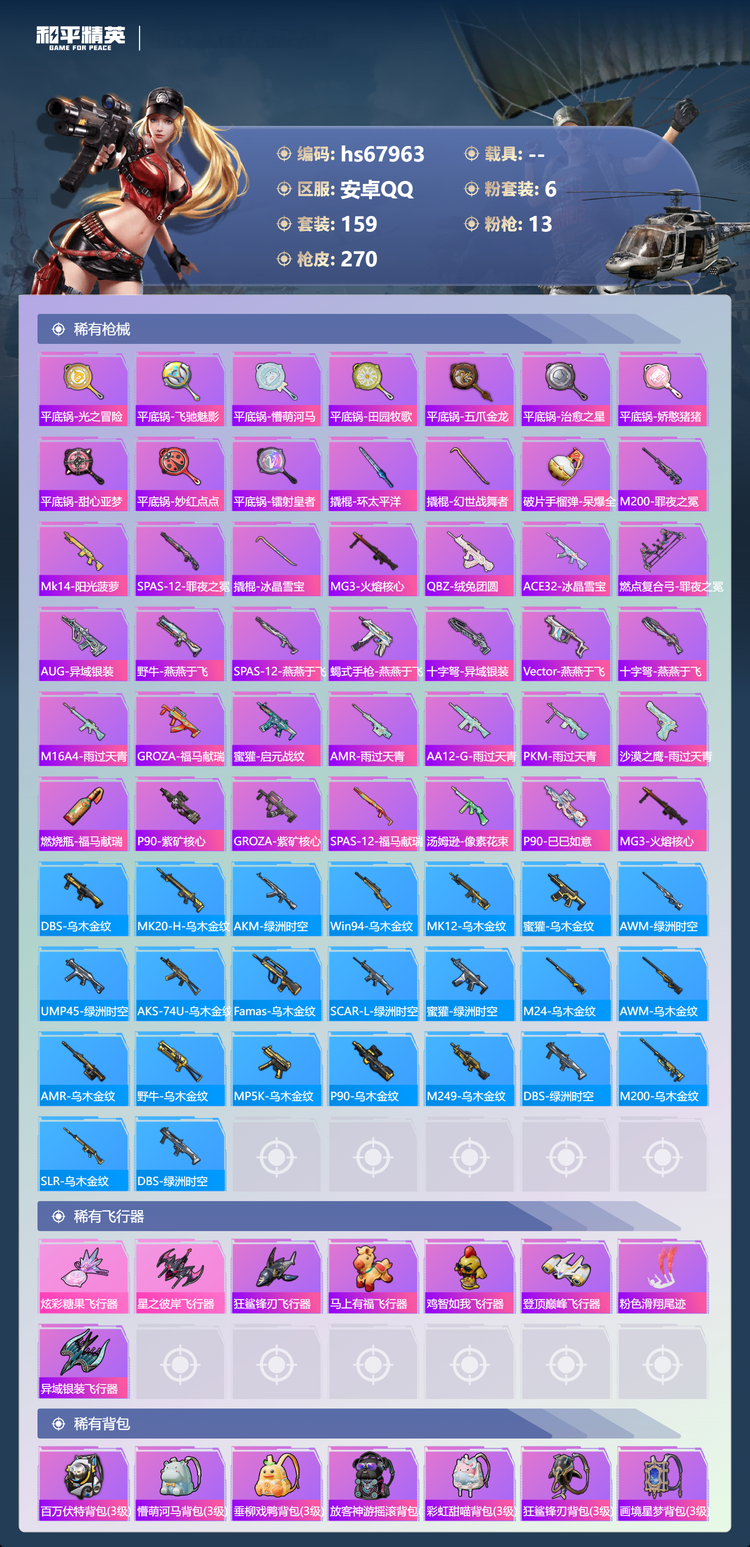 安卓手Q-15王牌印记-6粉装-13特效枪-76228热力值-1
