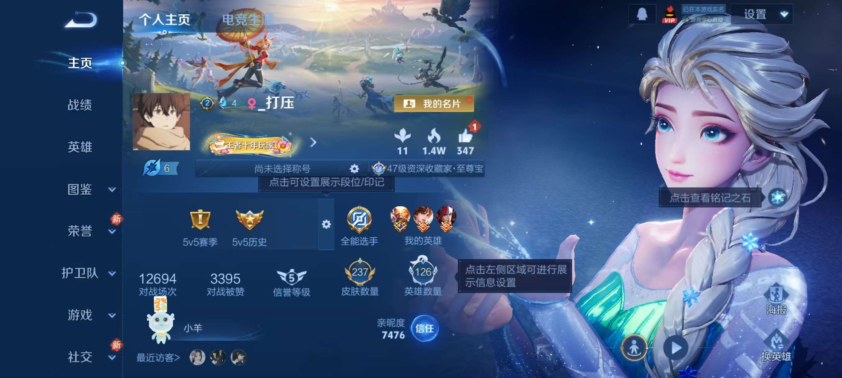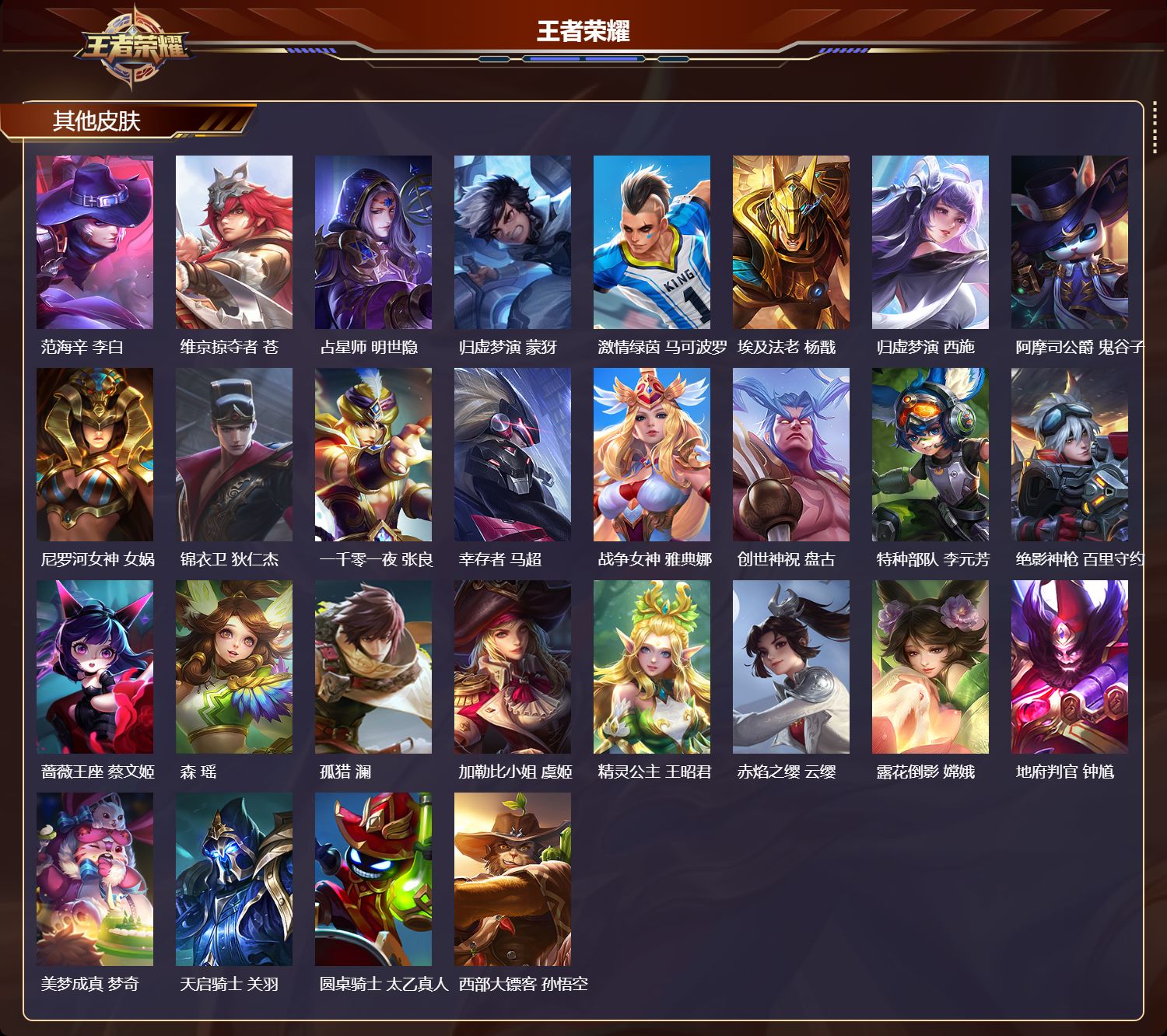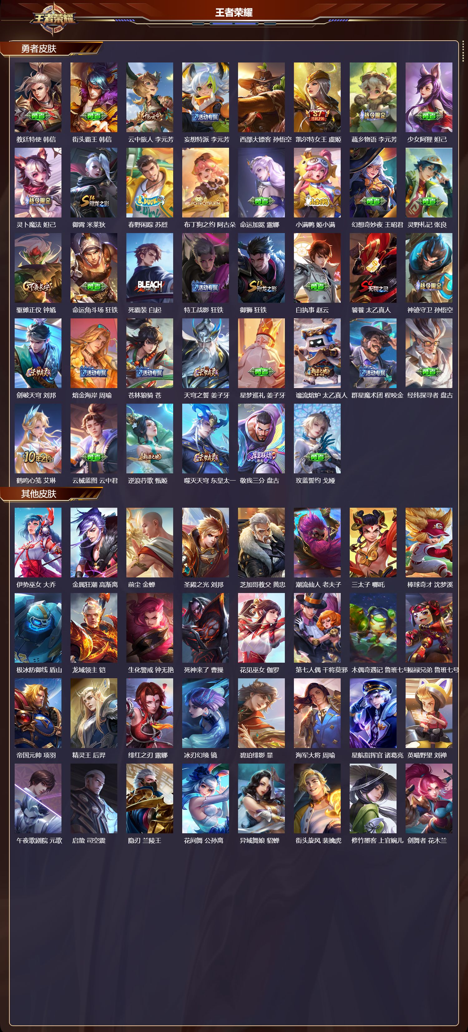 荣耀黄金/237皮肤/126英雄/1典藏/0珍品无双/2无双/0珍品传说/5传说/48史诗/8稀有英雄