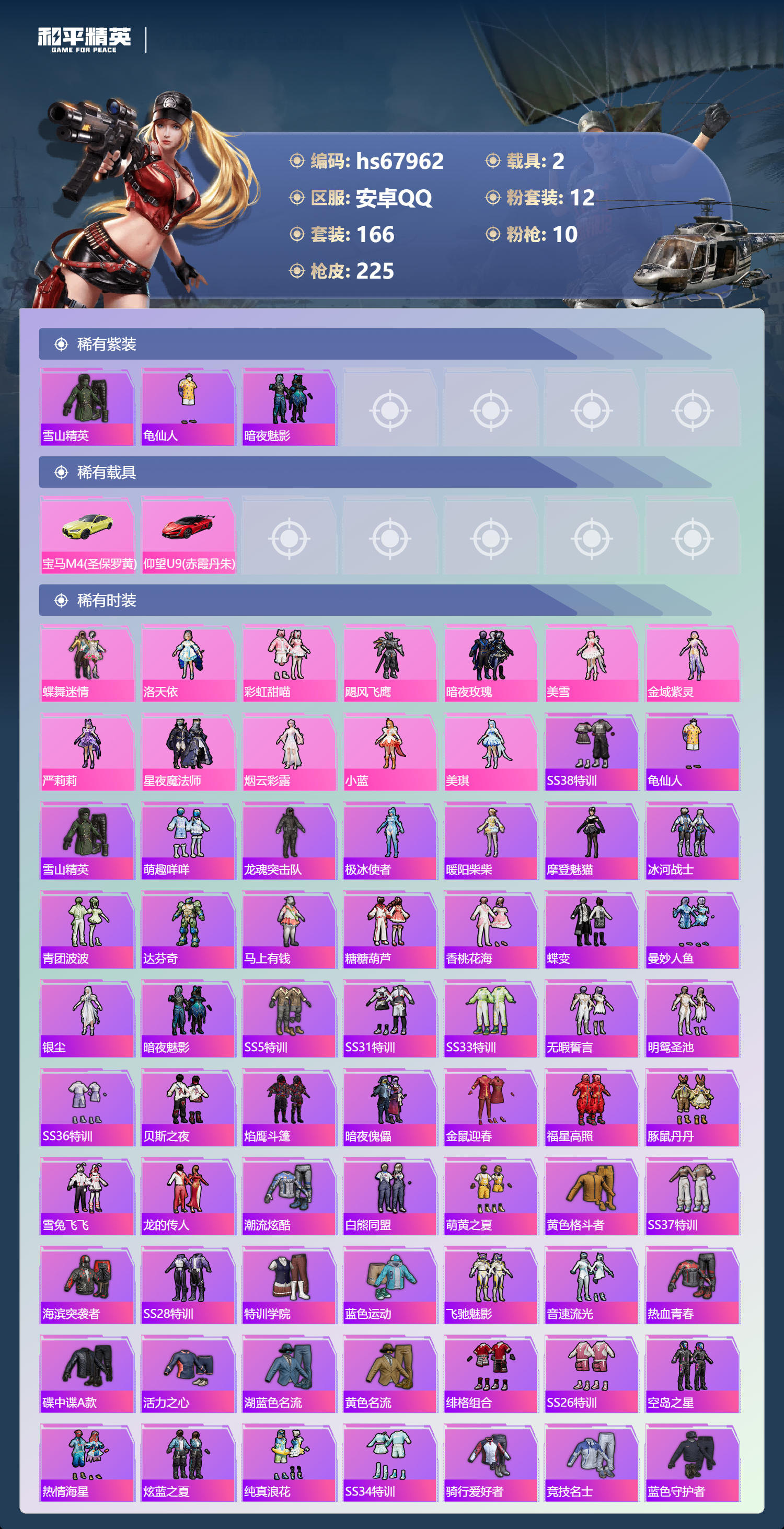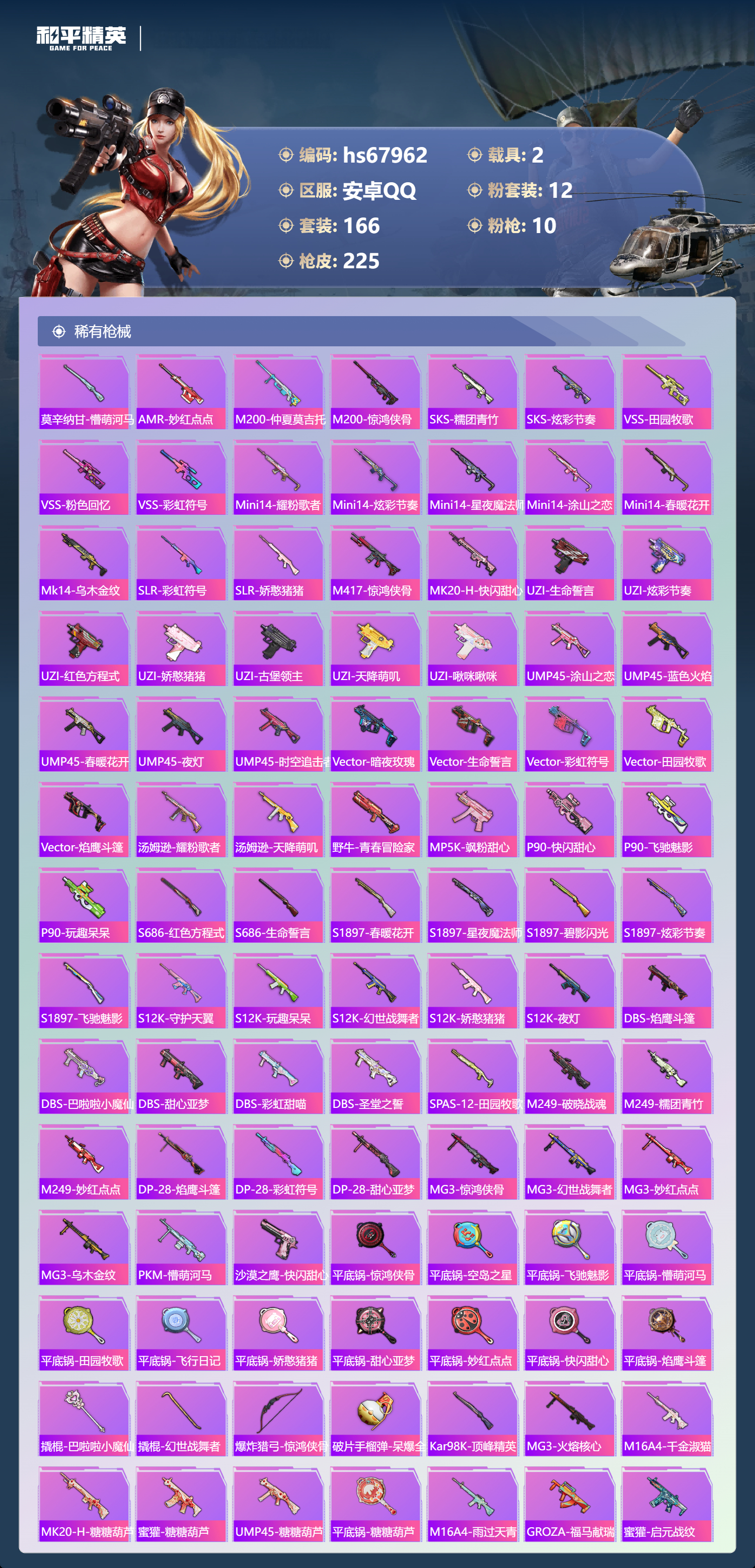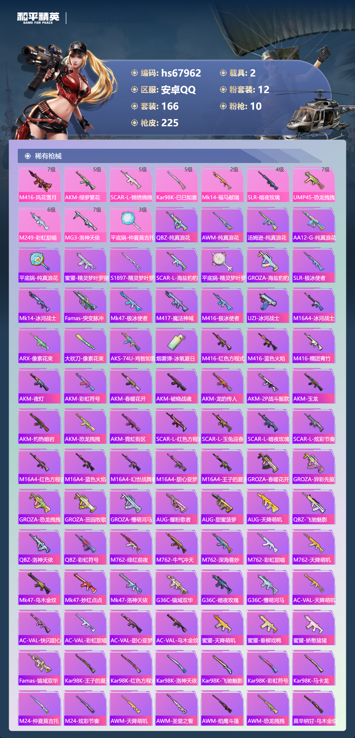 安卓手Q-5王牌印记-12粉装-10特效枪-2载具-76643热