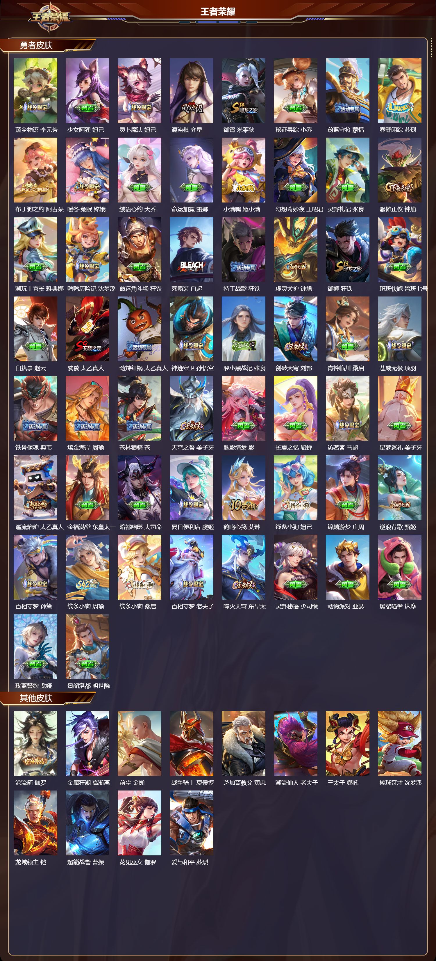 荣耀王者/464皮肤/128英雄/3典藏/1珍品无双/9无双/6珍品传说/66传说/138史诗/9稀有英雄