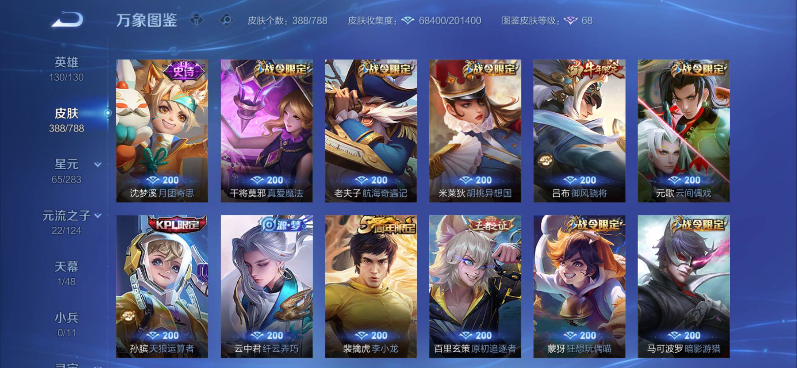 可换绑【高性价比v10·曜无双·八典藏·霜北刀·落雪白狼·浮生妄·时之奇旅·启示之音·时雨天司·武圣·白虎志·太华·天魔缭乱·御风骁将·引擎之心·贵族积分19w】 59戳戳 6按键 3星传说,16王者印记,260五级铭文,无二次苹果Q-V10-389皮肤-7典藏皮肤-1典藏英雄-1无双-30传说-116史诗【英雄全皮】:孙权全皮,狂铁全皮,猪八戒全皮,敖隐全皮【荣耀