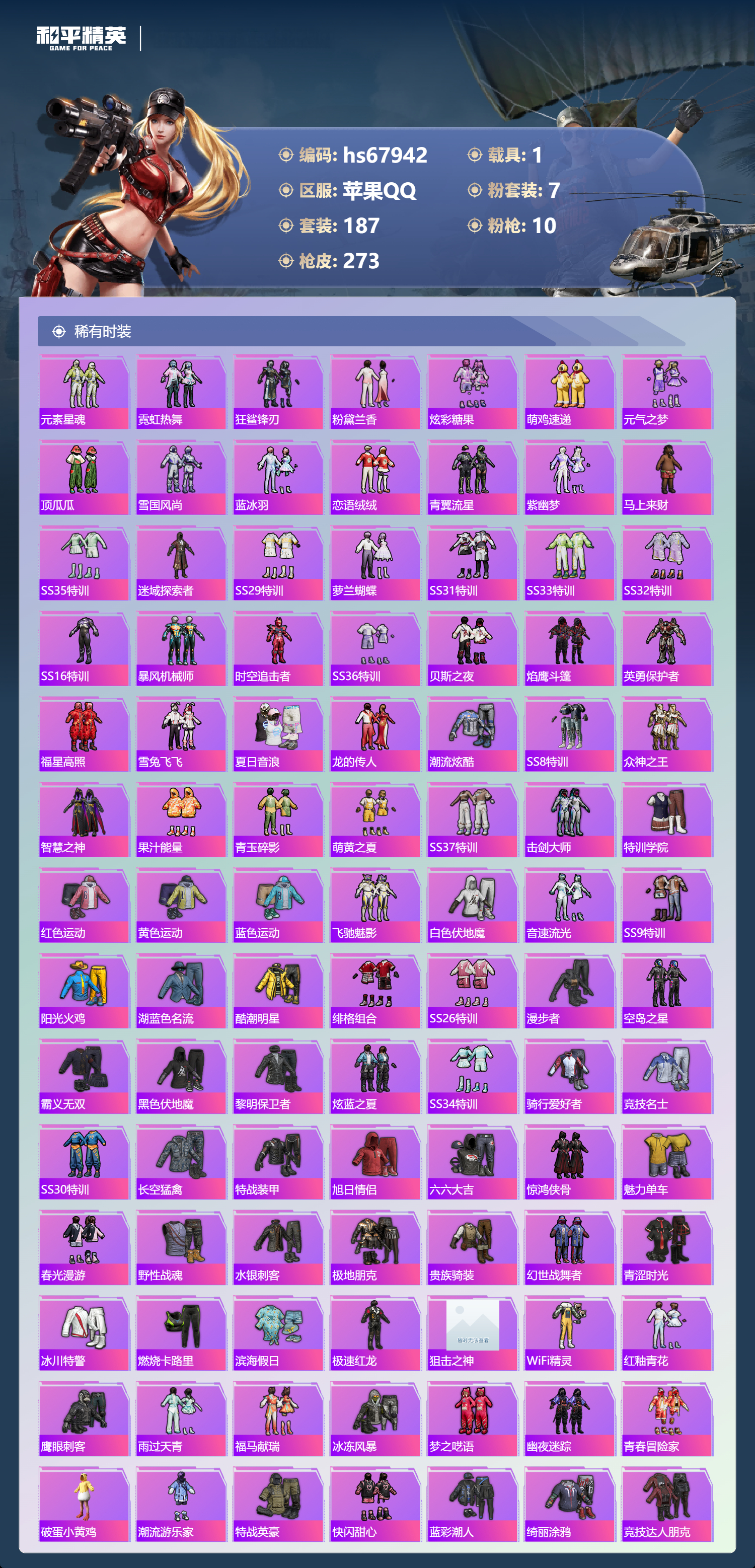 苹果手Q-19王牌印记-有战神框-1红装-7粉装-10特效枪-1