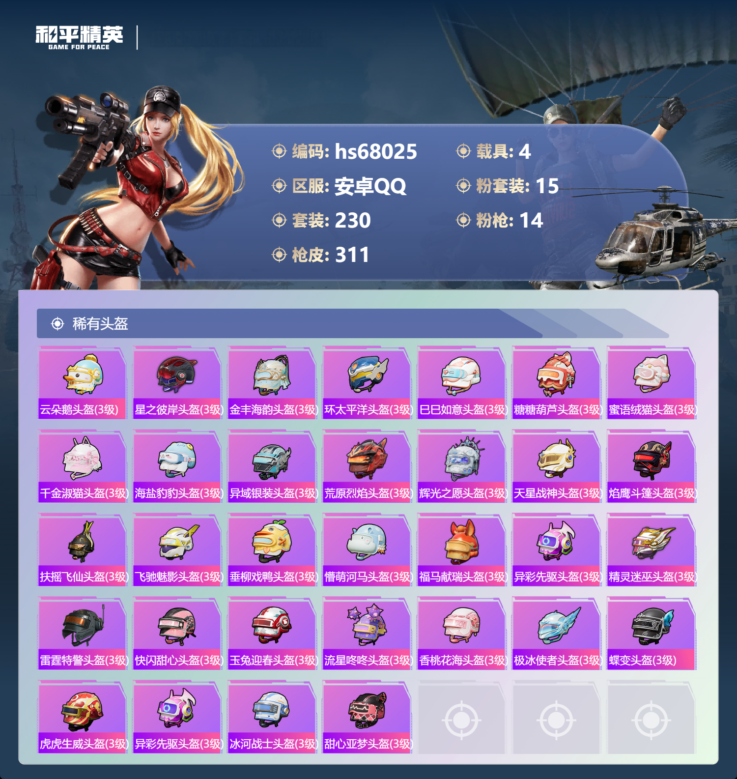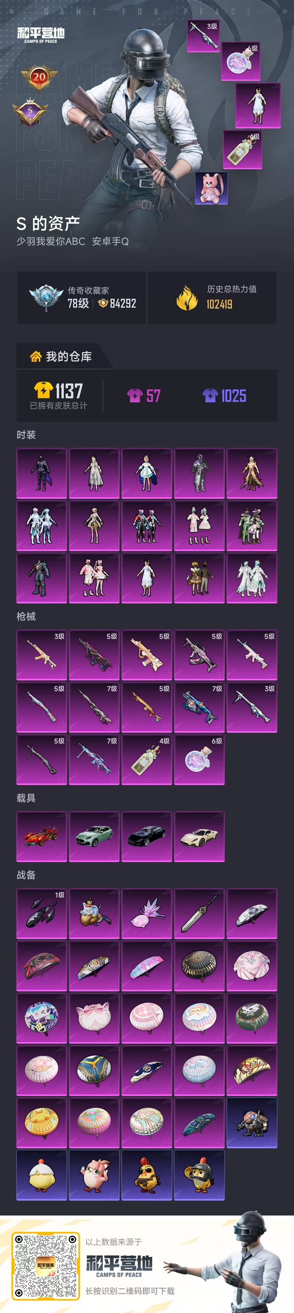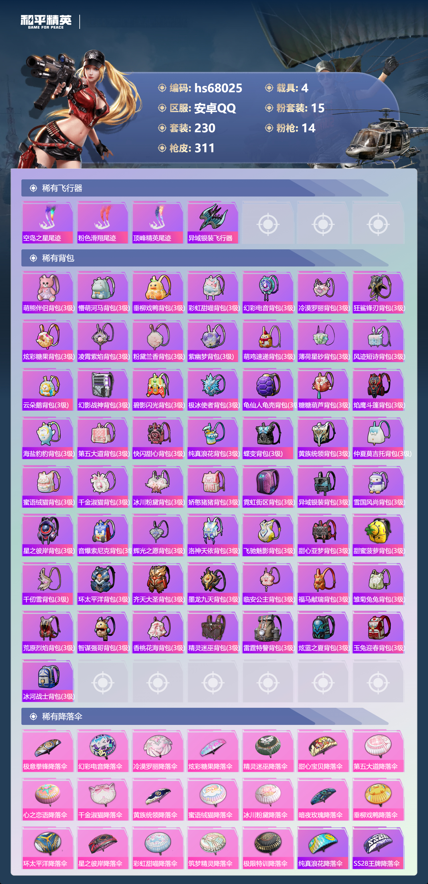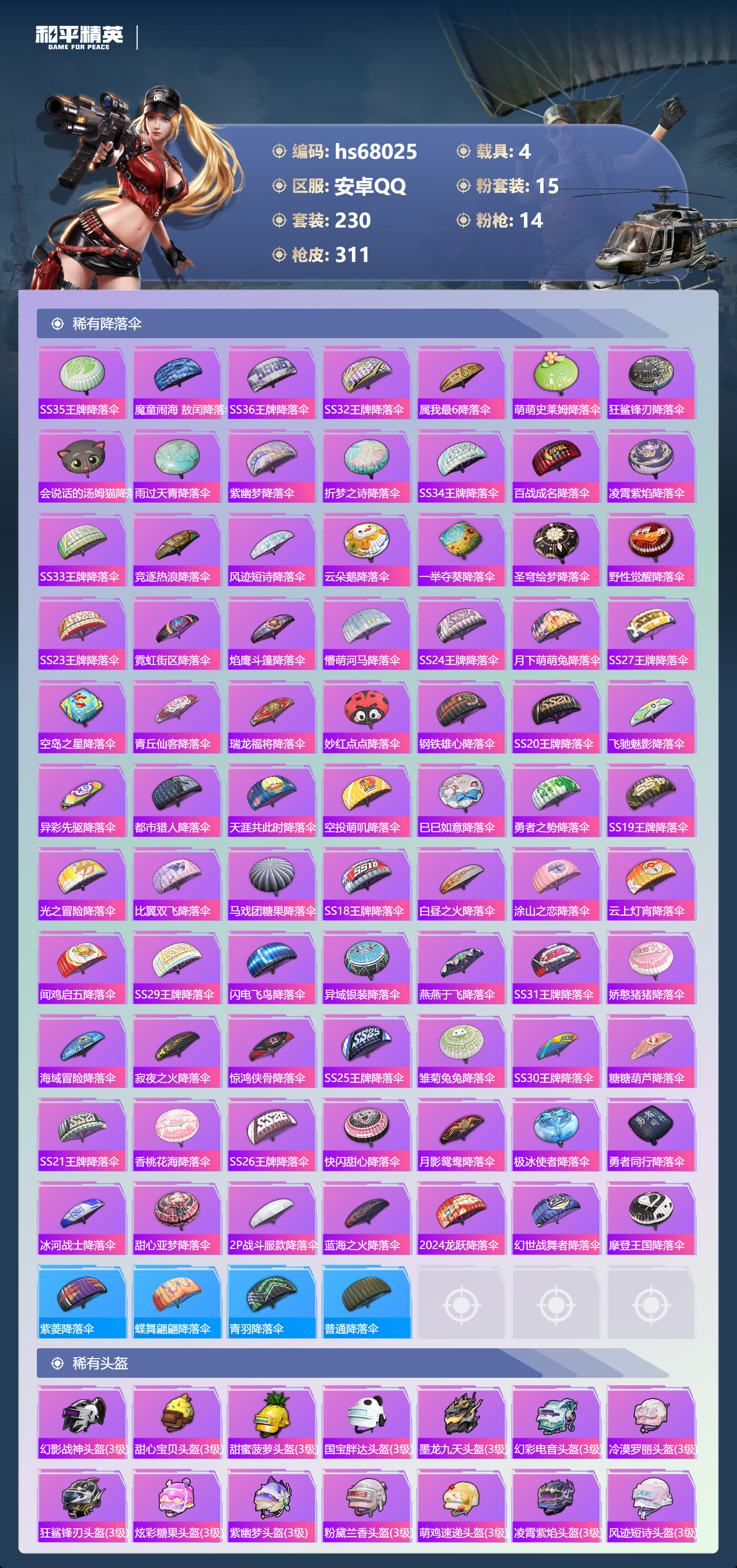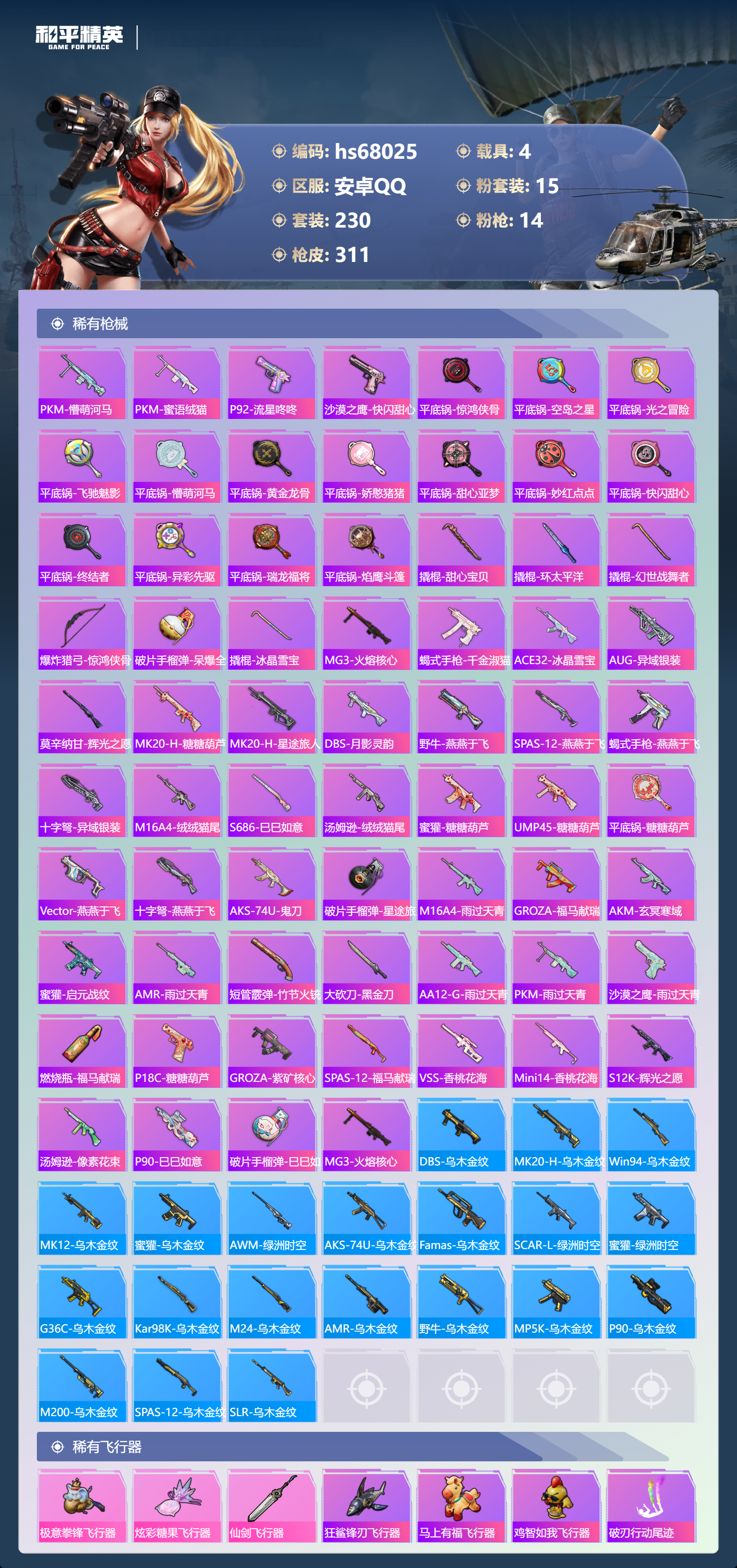 安卓手Q-20王牌印记-15粉装-14特效枪-4载具-热力值-2