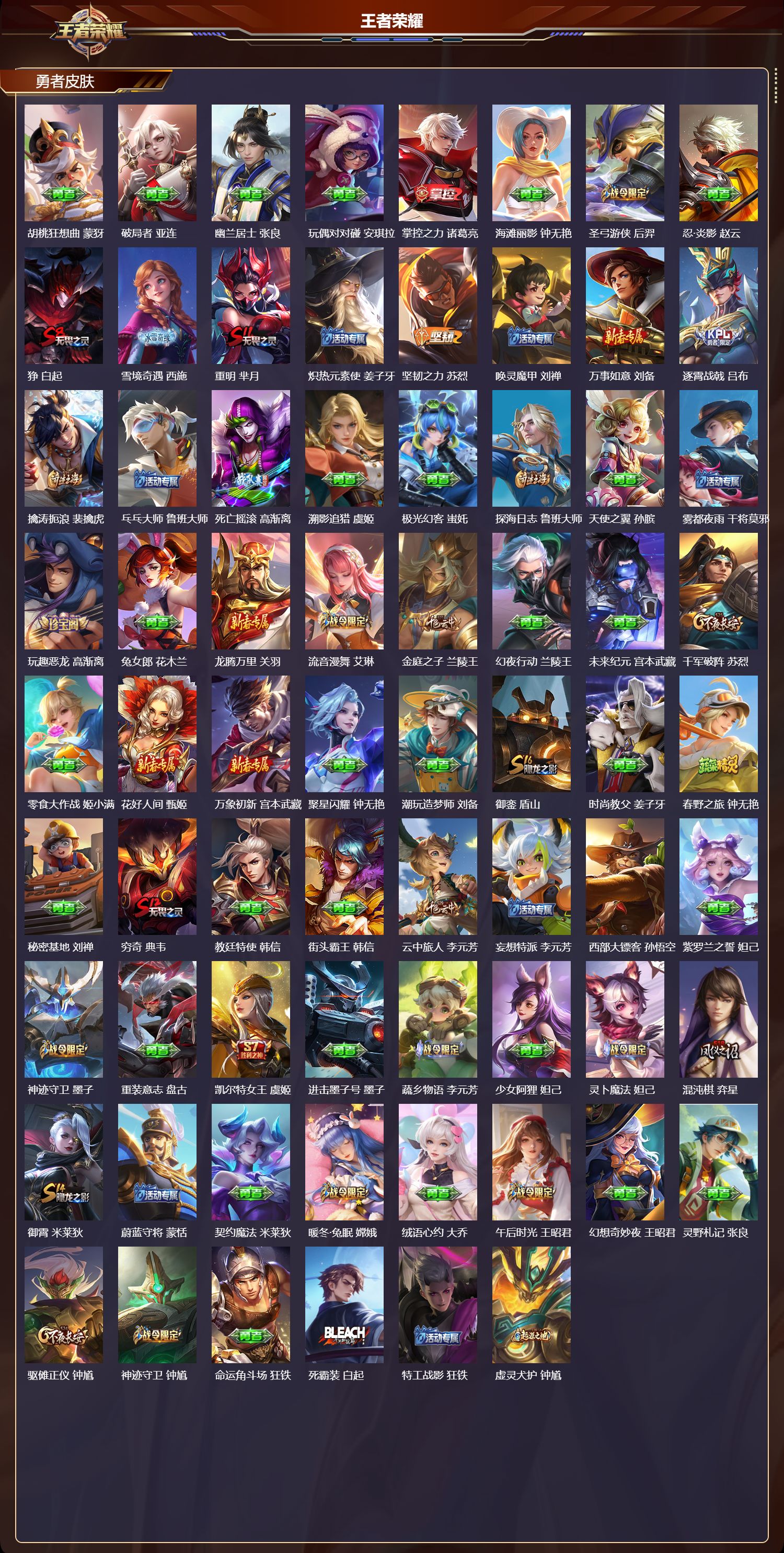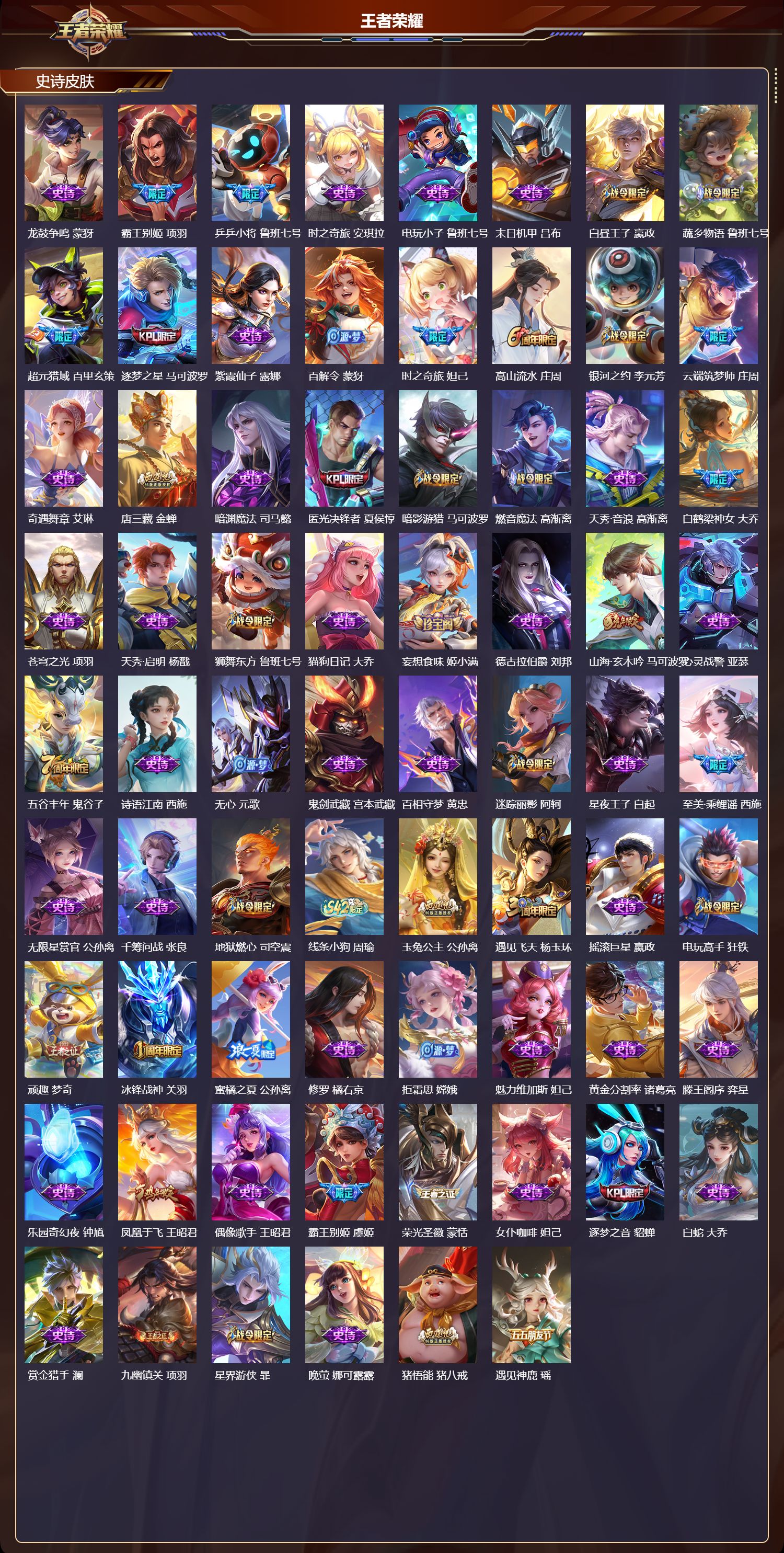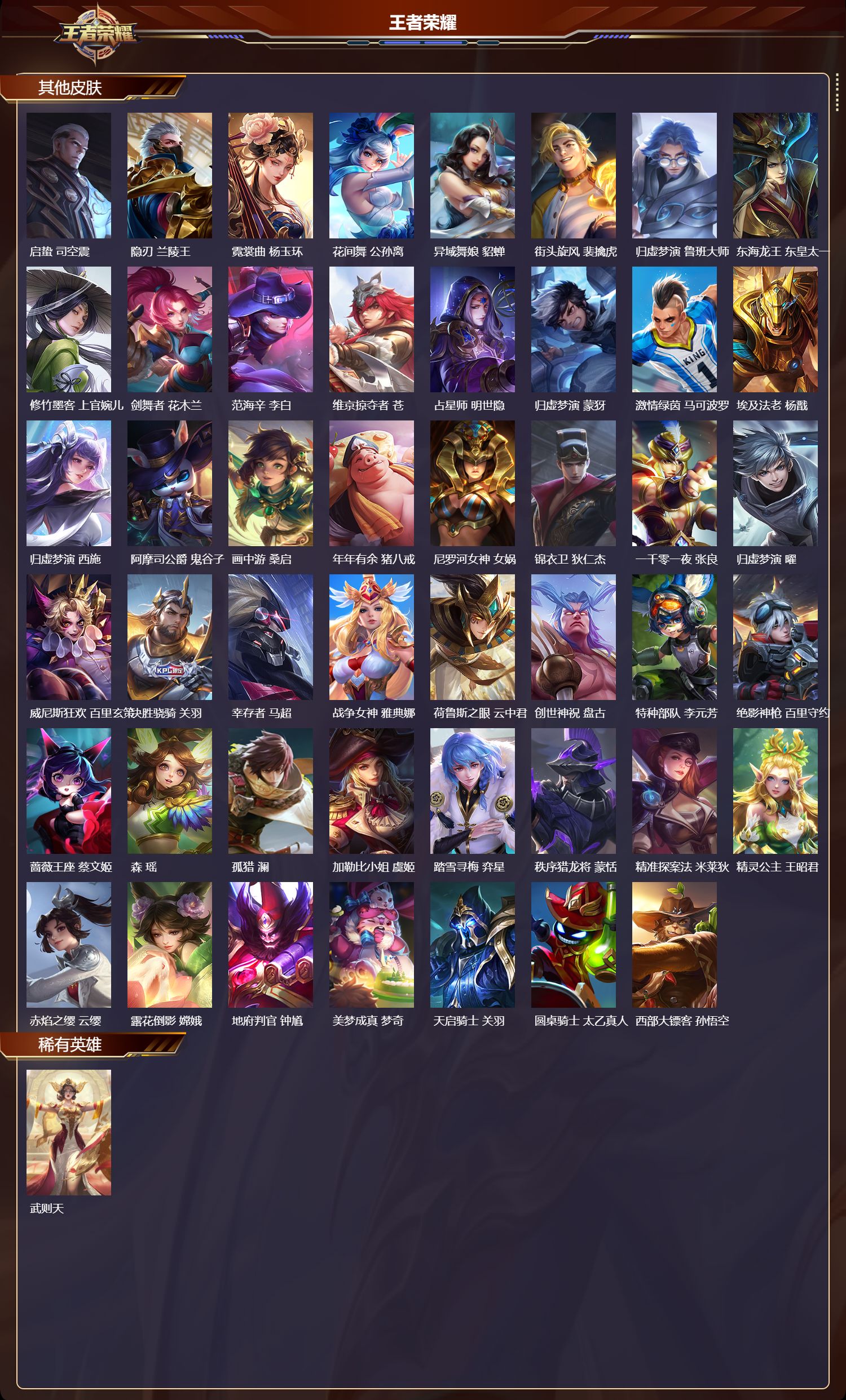 至尊星耀/534皮肤/130英雄/8典藏/0珍品无双/1无双/0珍品传说/61传说/184史诗/10稀有英雄