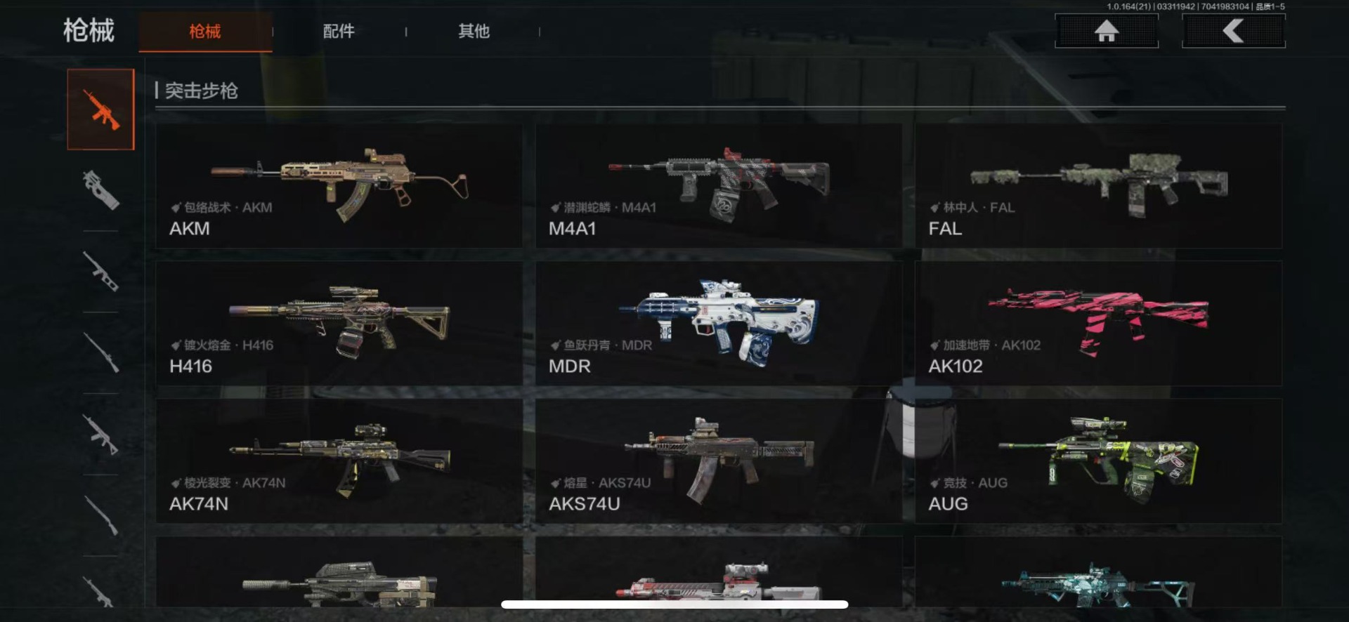 【金色枪皮】包络战术·AKM,镀火熔金·H416,赤帽要塞·AR57,林中人·FAL,旧王圣谕·QBZ191