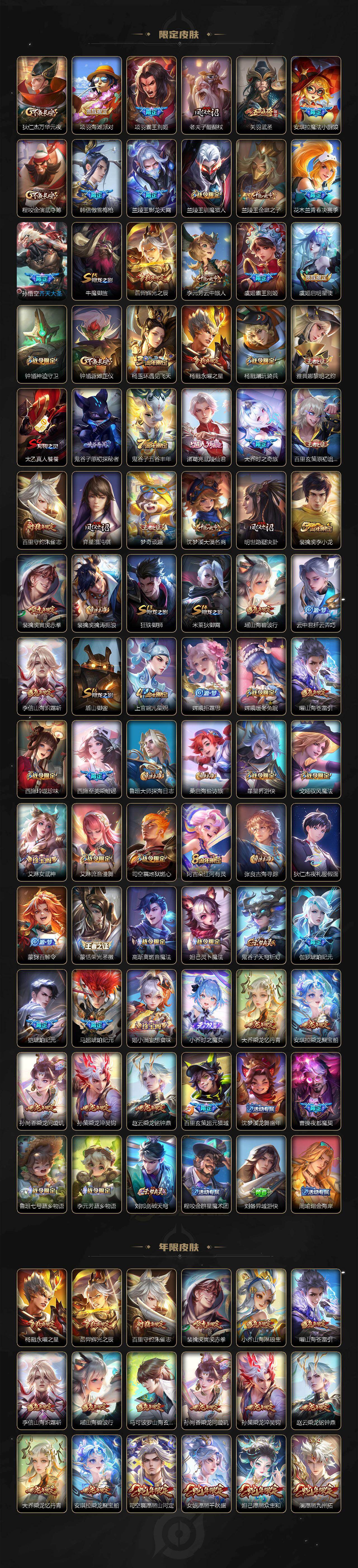 贵族等级9/荣耀典藏数量1/传说皮肤数量41/史诗皮肤数量106/皮肤数量406/英雄数量129/段位最强王者/扁鹊全皮/司马懿全皮/苍全皮/鬼谷子全皮/敖隐全皮/司空震全皮/戈娅全皮/空空儿全皮/武则天/星空梦想 鲁班七号/器灵·螭龙剑 曜/时之魔女 小乔/器灵·落星盏 嫦娥/九山相柳 司马懿/千劫归真 后羿/愿照·山河定 司空震/愿照·千秋盛 女娲/愿照·众生和 妲己/愿照·九州拓 澜/愿