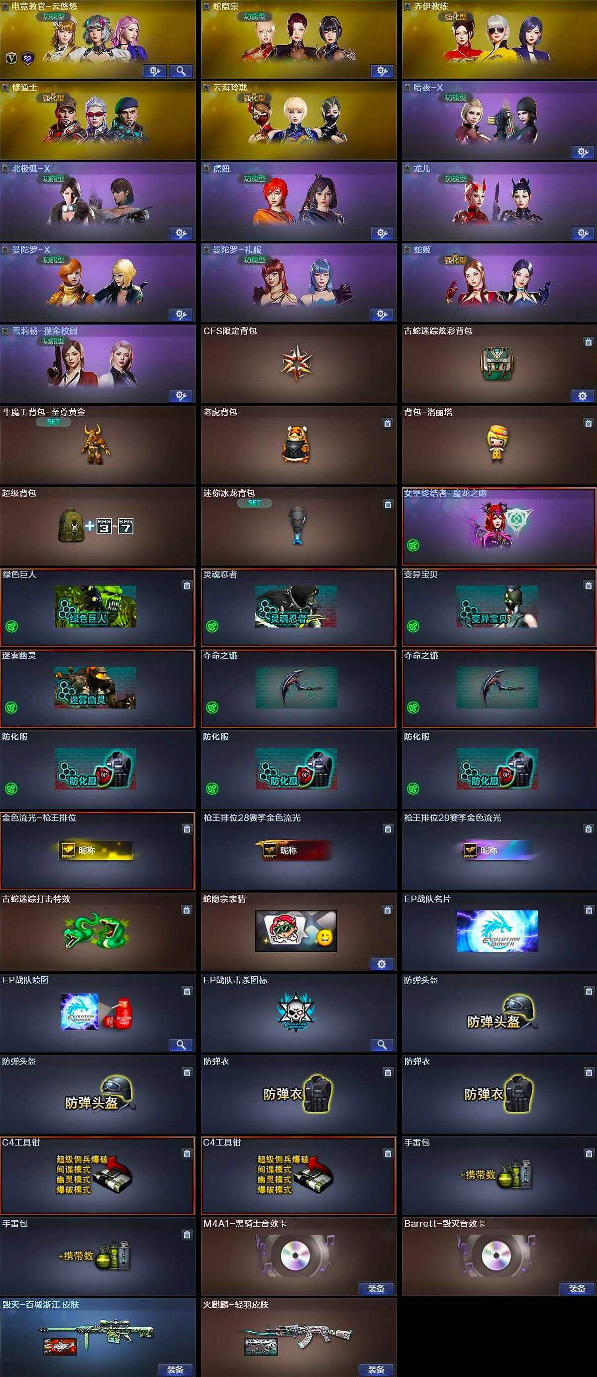 【角色】:电竞教官-云悠悠,蛇隐宗,乔伊教练,修道士,云海玲珑,暗夜-X,北极狐-X,虎妞,0号玩家,龙儿,曼陀罗-X,曼陀罗-礼服,蛇姬,雪莉杨-摸金校尉