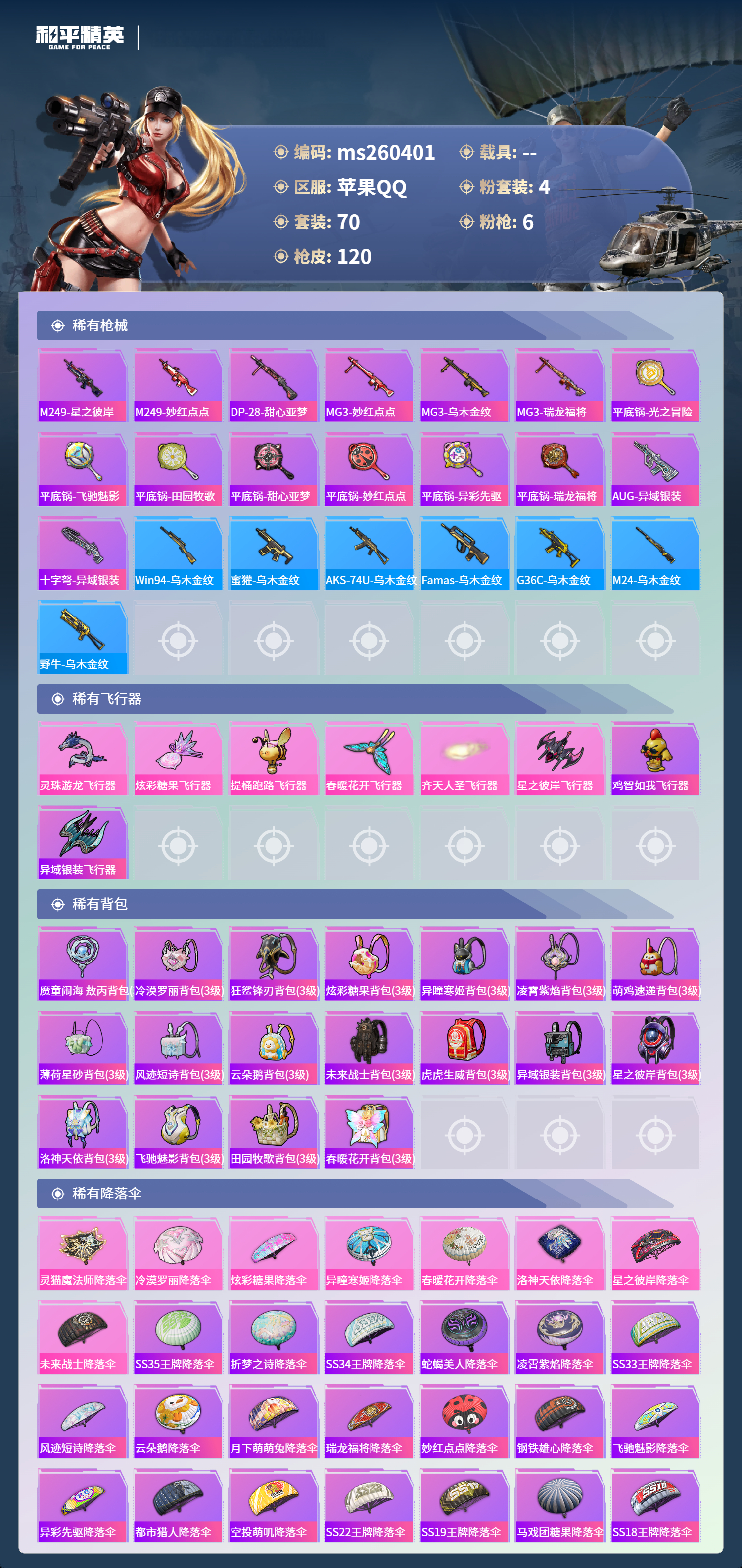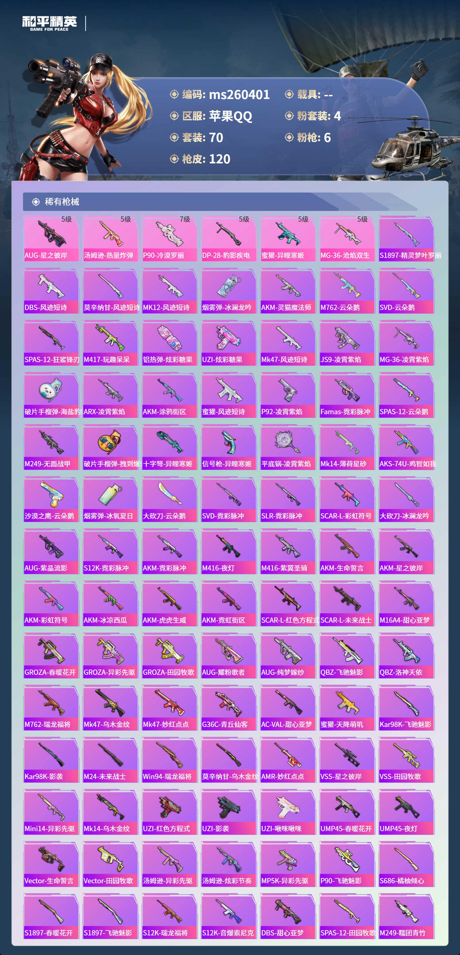 【AUG-星之彼岸枪皮小号三位】苹果手Q-8王牌印记-4粉装-6特效枪-3922