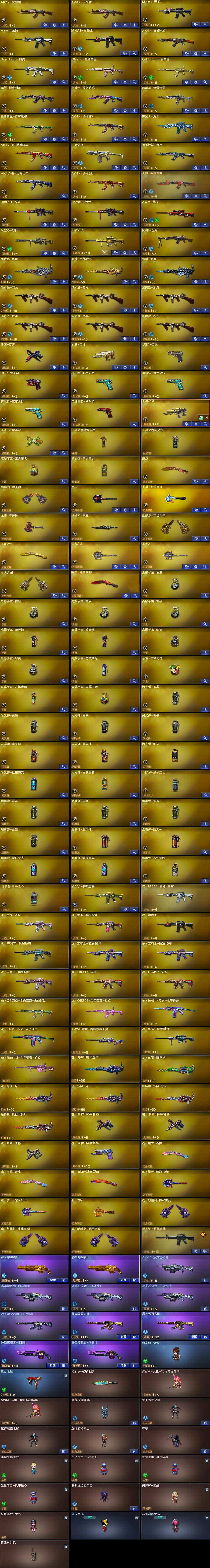 【热门武器】:QBZ03-金色蔷薇,Scar Light-白虎,M200-幻神,金色蔷薇-古蛇迷踪,修罗-古蛇迷踪,死亡之眼,柯尔特-冠军之特*3,荣耀世冠-柯尔特,M4A1-黑骑士,汤姆逊-烈龙*6,RPK-盘龙,加特林-炼狱,斯泰尔-蝴蝶,USP-雷暴,COP-堕天神,沙鹰-修罗,Knife-冠军之刃,金刚伞