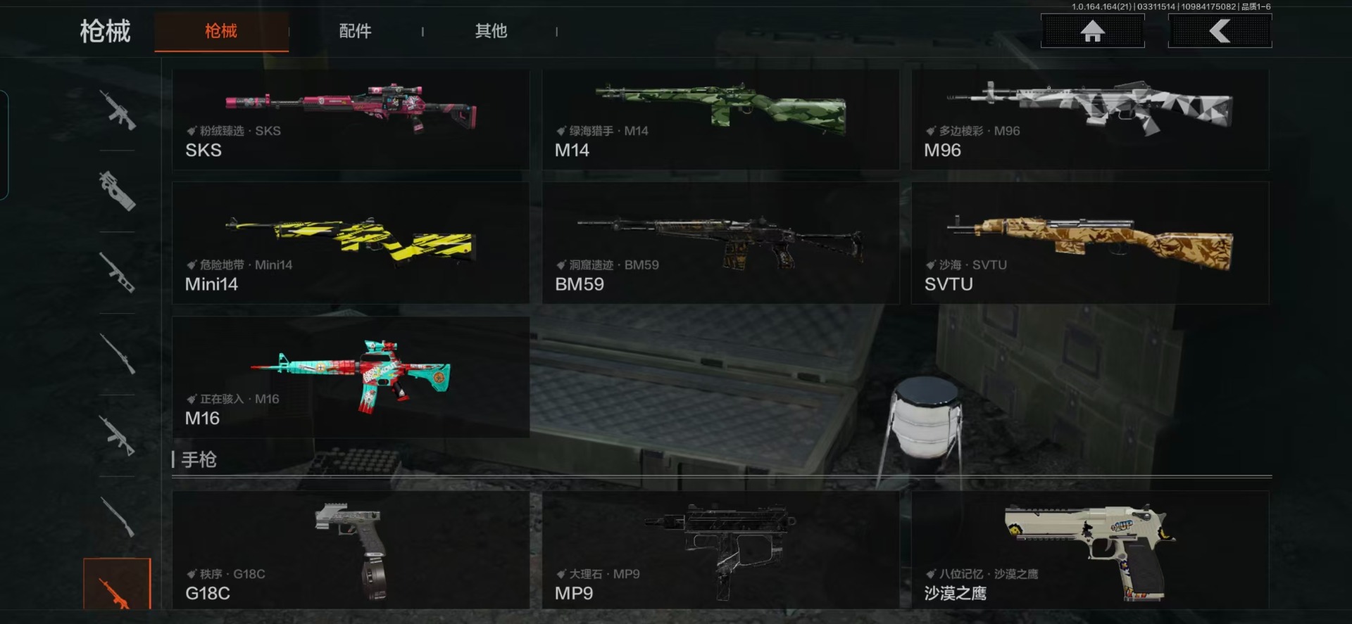 【金色枪皮】地脉深处·ACE31,近卫荣誉·RPK16,包络战术·AKM,战术大师·AEK,千炼铁阵·MK14,镀火熔金·H416,棱光裂变·QBU191,伦琴幻影·AX50,利齿风暴·MPX,骑士之剑·VSS