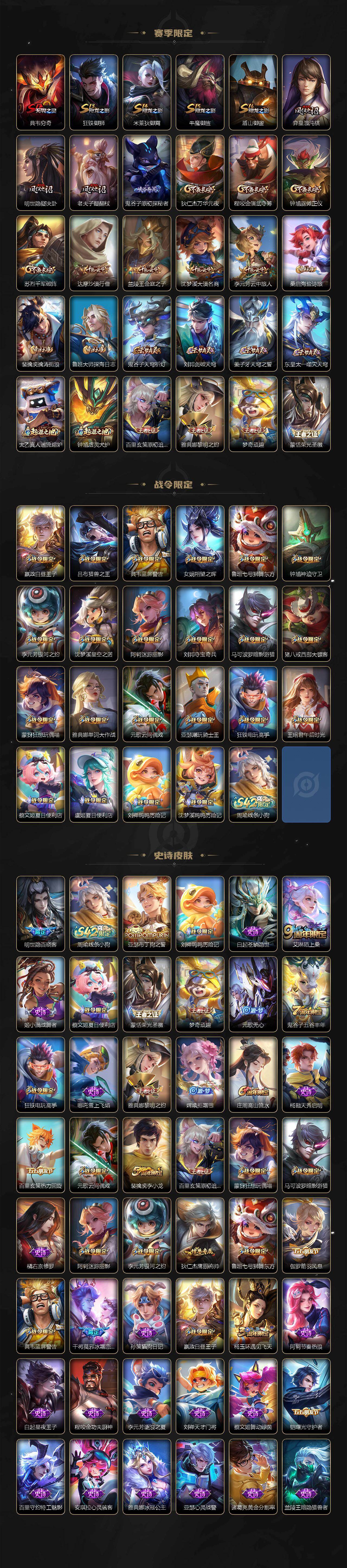贵族7/皮肤281/典藏2/传说7/史诗77/英雄128/孙权全皮/敖隐全皮/全